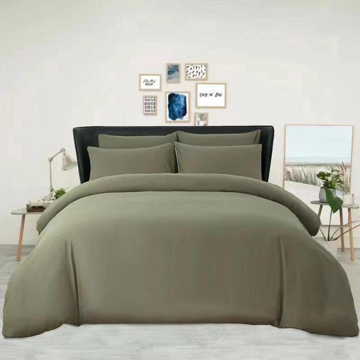 Plain Duvet Cover With Pillowcase Bedding Set - Khaki / Double
