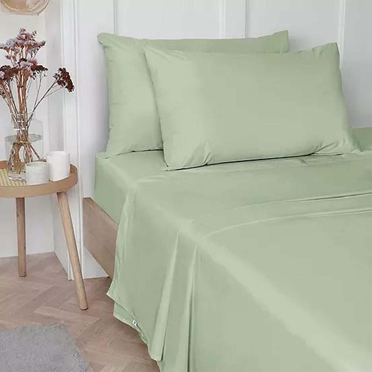 Plain Dyed Pure Cotton Fitted Valance Sheet - Green / Single