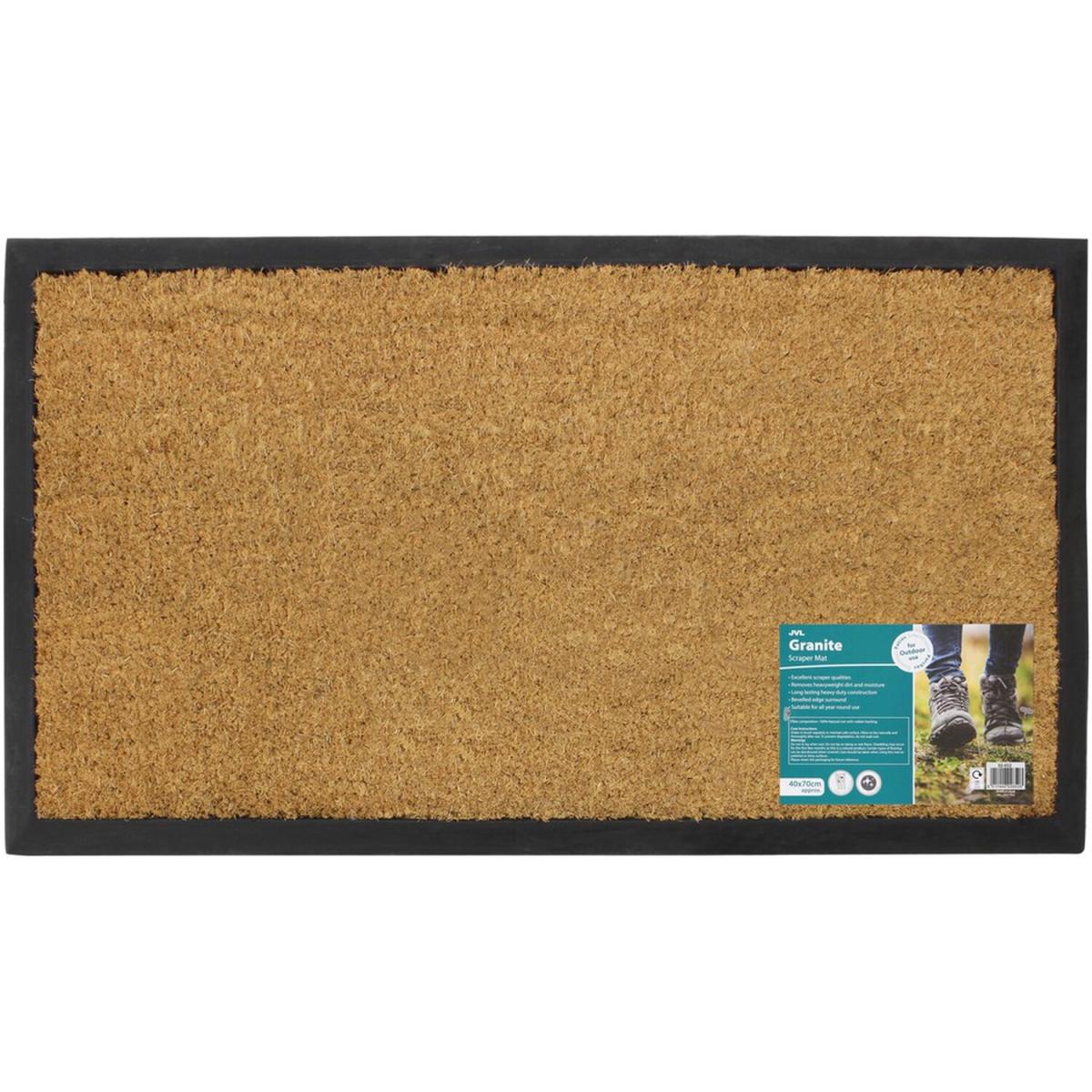 Traditional tuffscrape design made from natural coir (coconut hair) inset into a rubber tray. This Mat has excellent scraper properties and is robust and designed to withstand any weather. The durable coir moves in all directions to get deep into the soles and removes heavy soil and mud from boots and shoes. This mat also has a bevelled edge which allows wheeled items to glide over more easily.