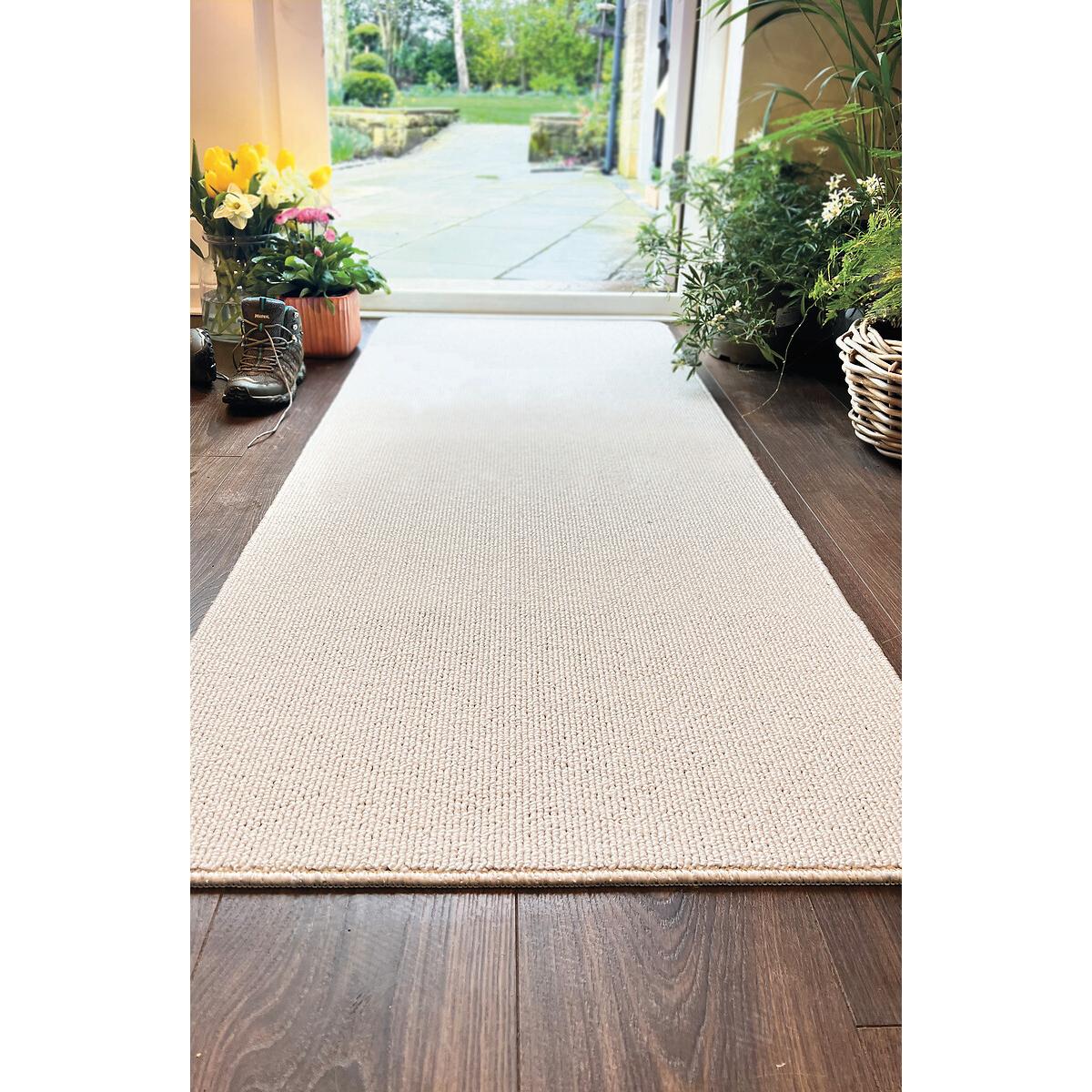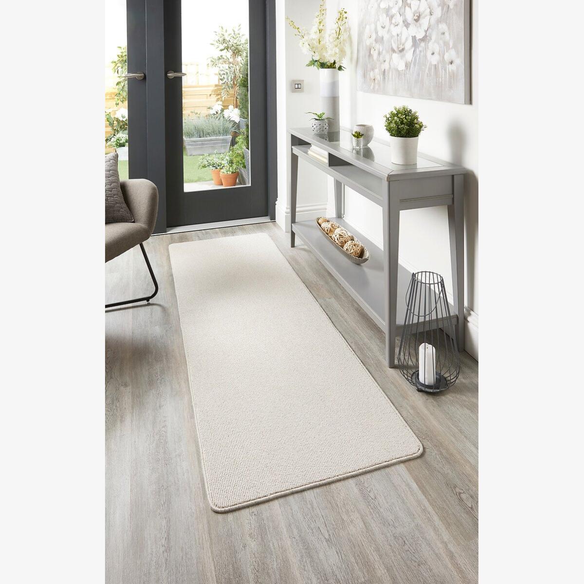 I love the plain stain-resistant runner for its practical yet understated style, making it a great addition to both contemporary and traditional interiors. It's especially suited for hallways, entryways, or kitchens where durability and ease of cleaning are key. The neutral colour and simple design allow it to blend seamlessly with a variety of colour palettes and furniture styles. For styling tips, consider pairing it with sleek, modern furniture for a minimalist look, or layer it with textured textiles and colourful accents to add warmth and personality. Its stain-resistant feature makes it ideal for busy households, ensuring it stays looking fresh without constant fuss.
