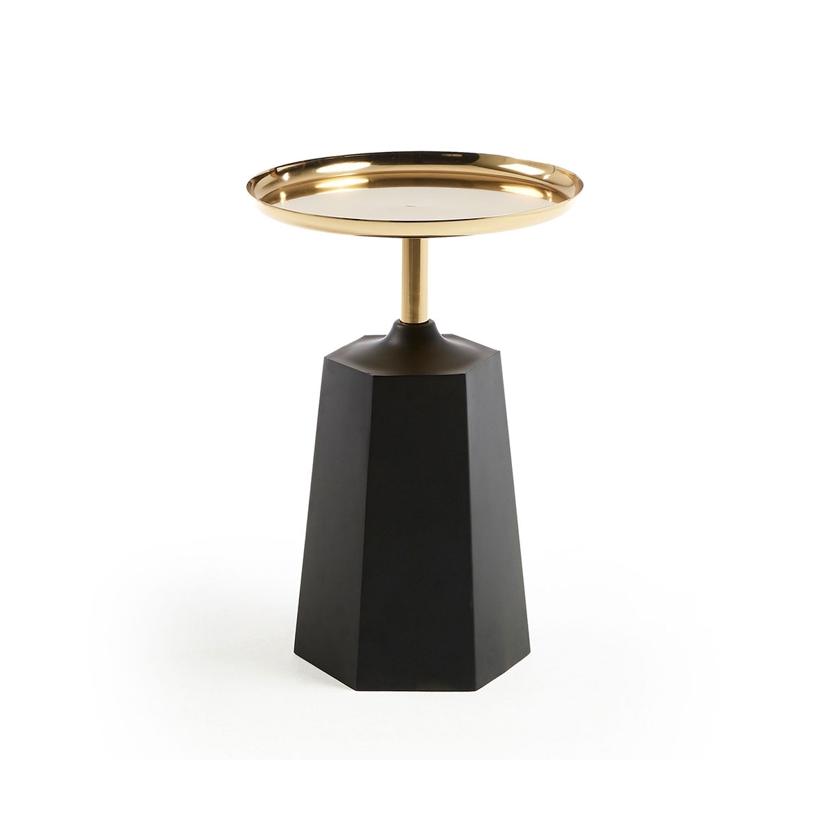 I love this side table because of its contemporary style and versatile silhouette. The black base adds a touch of sophistication, while the gold tray top offers a hint of luxe that works well with modern or glam interiors. It's perfect for adding visual interest in a seating area or beside a bed, and its compact size makes it functional without overwhelming a space. For styling, try pairing it with minimalist accessories, such as a small planter or elegant candle, to accentuate its sleek design. It also works well in eclectic or industrial settings when paired with textured cushions or metal accents, making it a flexible addition that can elevate various interior styles.