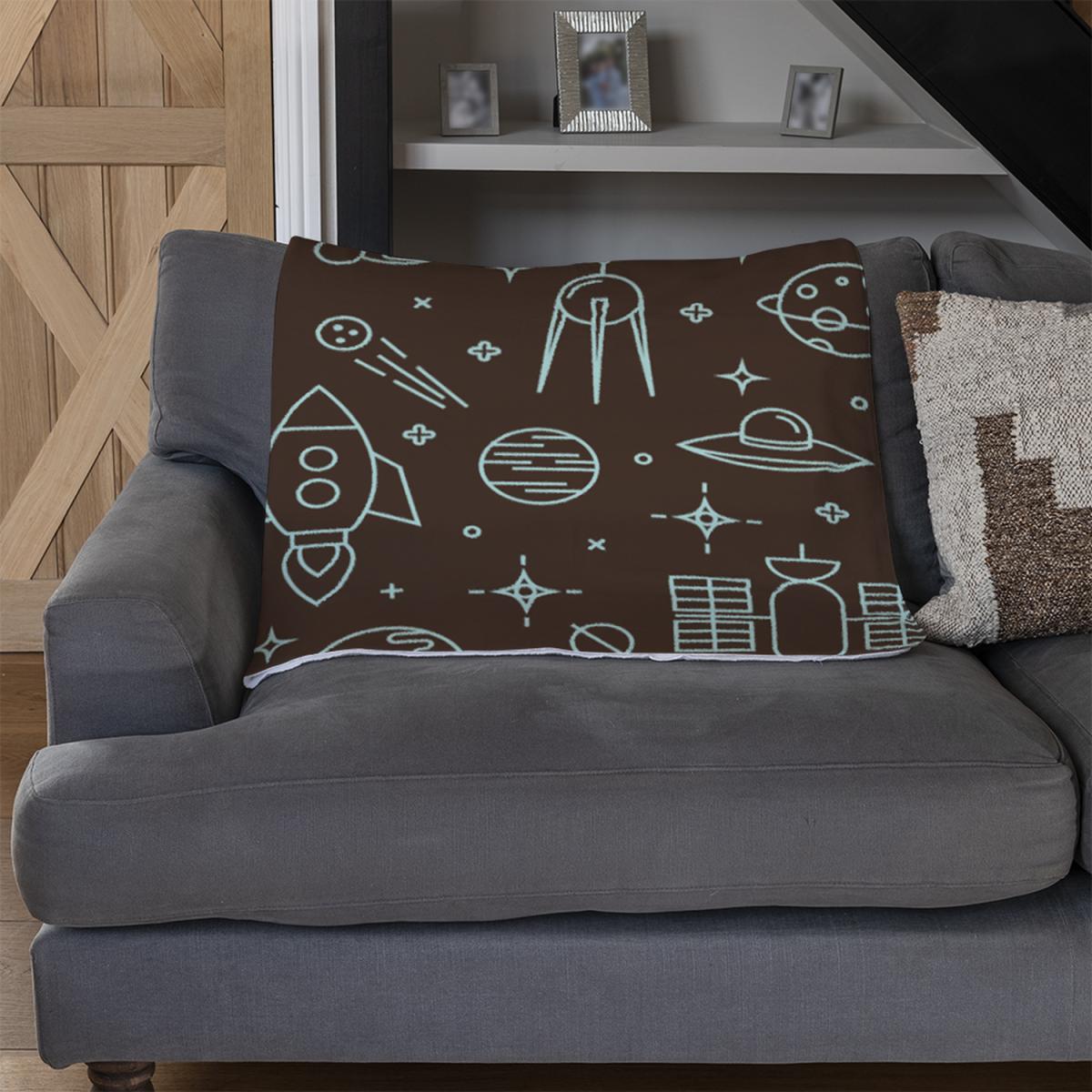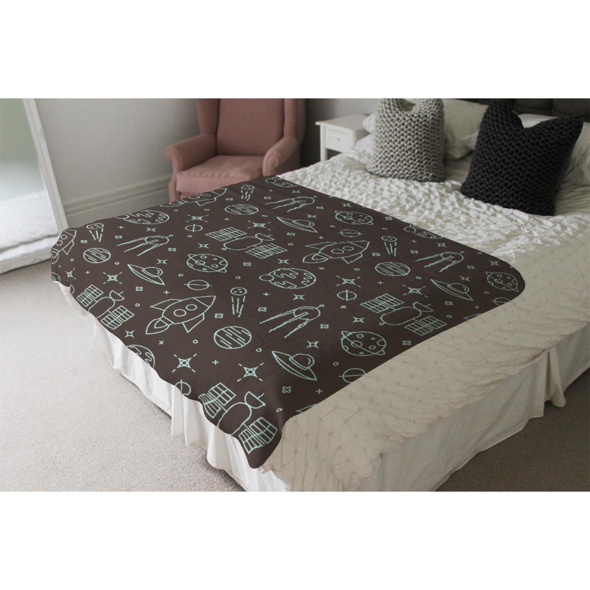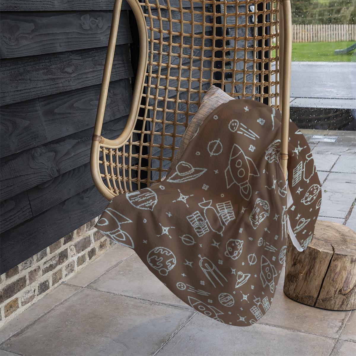 This throw is a fantastic choice for adding a cosy yet playful element to a child's bedroom or a fun, casual living space. I love the warm brown tone paired with the celestial and rocket motif-it brings a subtle sense of wonder without overwhelming the decor. It's versatile enough to complement neutral or earthy palettes, especially in interiors that embrace natural textures like wood or rattan, as seen in the image. To style it effectively, drape it over a sofa or bed for instant comfort, or fold it neatly in a basket for easy access. Its practical, lightweight design makes it perfect for everyday use, while the fun pattern adds visual interest and personality to the room.
