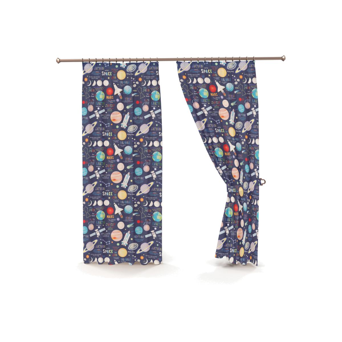 Planets Pencil Pleat Lined Curtains - Blue / 54cm