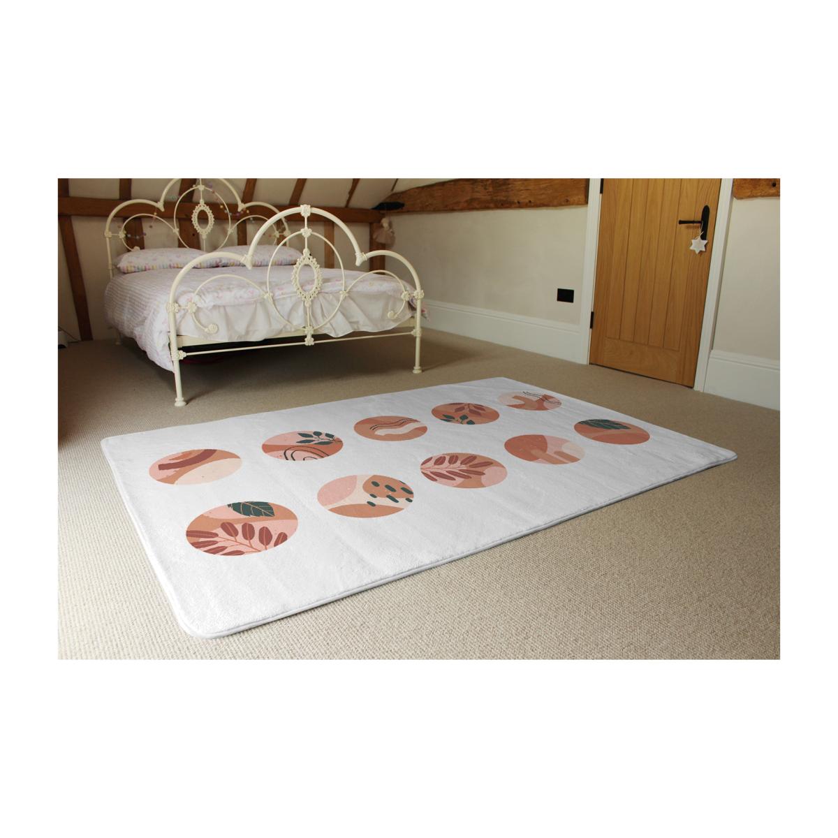 I love this pink rug with its autumn-inspired textures and plant motifs; it adds a warm, inviting touch to a range of interiors. It works particularly well in soft, neutral spaces, bedrooms, or cosy living rooms where you want to introduce a pop of colour without overwhelming the overall palette. For styling, consider pairing it with natural materials like rattan or wood furniture to enhance the earthy feel, and accessorise with cushions or throws in complementary shades. Its size makes it versatile for under a bed or in a seating area, creating a focal point that’s both functional and aesthetically pleasing.