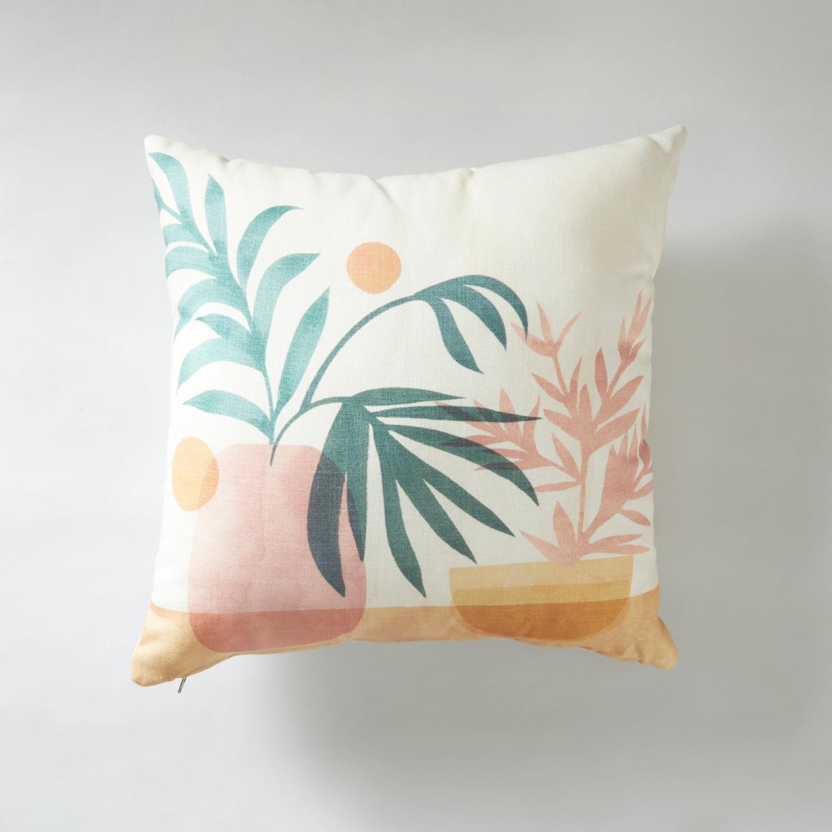 I love this plant pots cushion - its lively colour palette brings a fresh, botanical vibe that works well in both modern and boho interiors. It’s especially handy for livening up neutral sofas or beds, thanks to its cheerful green, yellow, and white hues. For styling tips, try pairing it with other cushions in natural textures like linen or woven fabrics to emphasise a relaxed, outdoor-inspired look. It also works well as an accent piece in tiers of cushions on a sofa or bed, creating visual interest without overwhelming the space. Its versatile colours make it easy to incorporate into spring or summer schemes, or even in a muted room where you want to introduce a pop of colour and pattern.