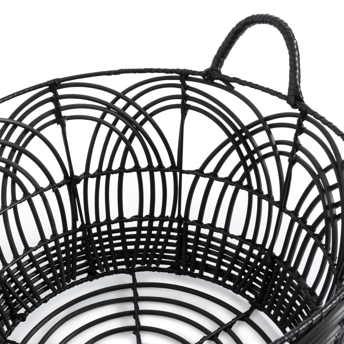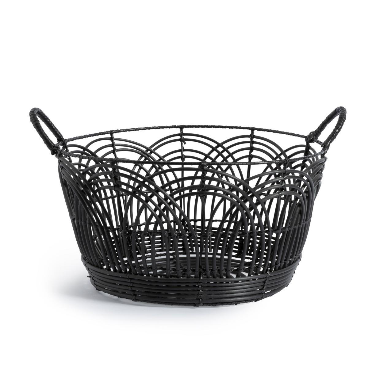This Plastic Black Small Rattan Basket is a stylish way to keep your home neat and tidy. The black rattan gives off a rustic look, while the fountain pattern creates a contemporary feel, making it a versatile piece that looks great alongside both modern or traditional décor. To top it off, this piece is made from 100% recycled plastic, so it's better on the environment.