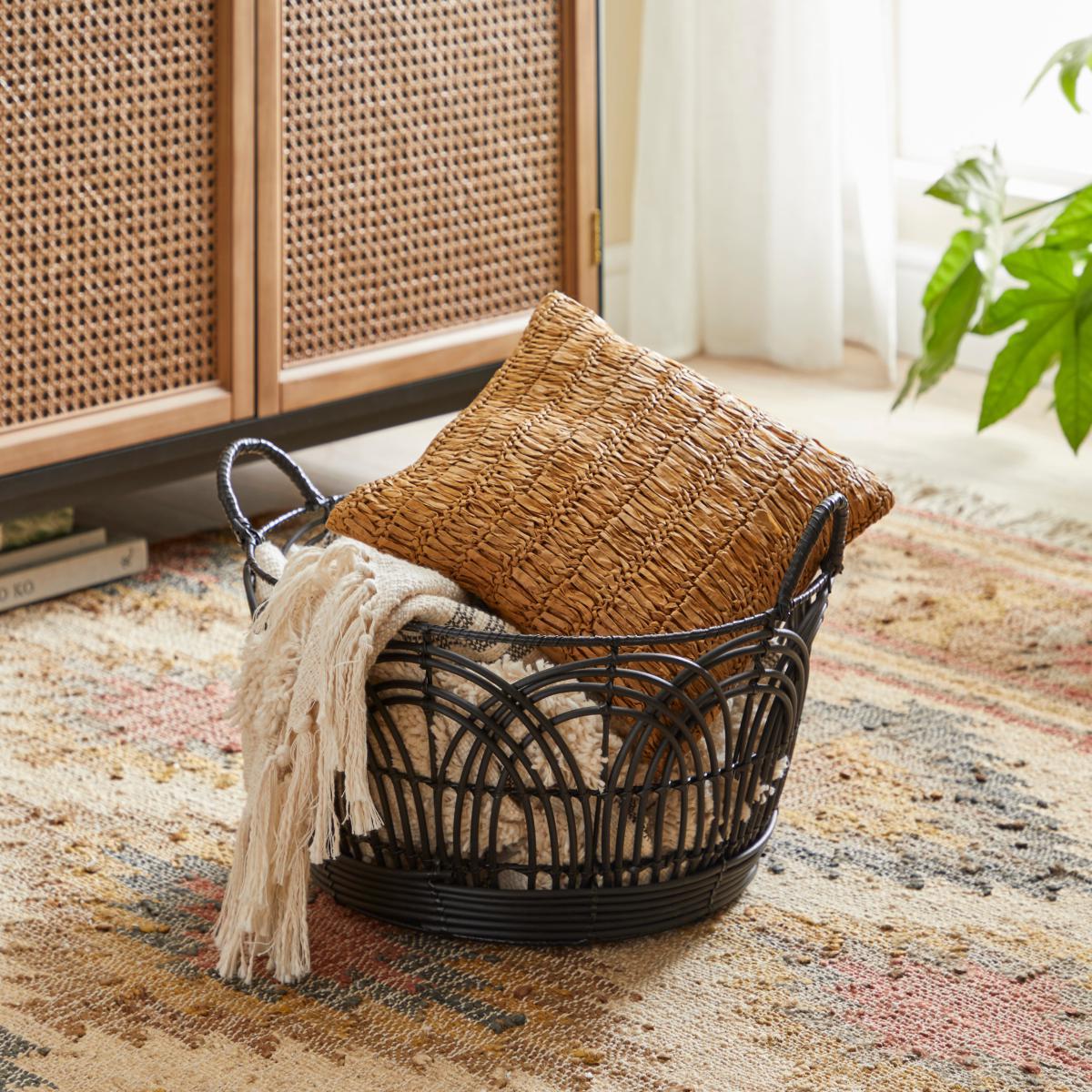 I love the black rattan basket for its sleek, modern twist on a classic material. It’s versatile and works well in both contemporary and eclectic interiors, adding texture without visual clutter. This size and finish make it ideal for storing throws, magazines, or small accessories, helping to keep your space organised while adding to the overall aesthetic. Practical styling tips include pairing it with soft textiles for cosy corners or using it as a statement piece in open shelving. Its dark tone lends itself beautifully to both light and darker schemes, providing contrast without overwhelming the space.