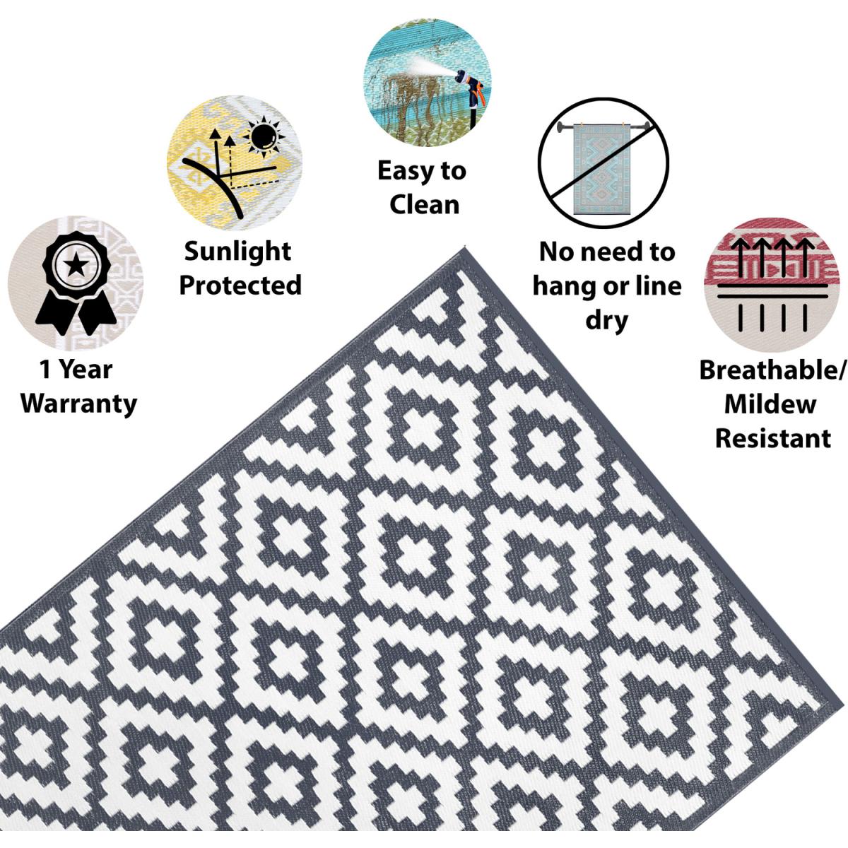 Whether you love to relax by the pool, sunbathe on the beach or simply need a rug for the kitchen that is easy to clean, our eco-friendly rugs will fit the bill perfectly. br. Made from recycled plastic straws, these rugs are water-resistant so you can use them indoors and outside. br. They are so versatile! They are lightweight and easy to carry, making them perfect for picnics and sun worshippers needn't worry as they are UV protected so they won't fade in the sun. If they are sandy from the beach, or covered in dirty footprints in a hallway, these rugs are so much easier to clean than conventional rugs, simply wipe them and they're as good as new. Comfortable to relax on, yet tough enough for high traffic areas of the home, there are so many uses for a Green Decore rug. Available in a range of sizes and designs to suit all tastes.