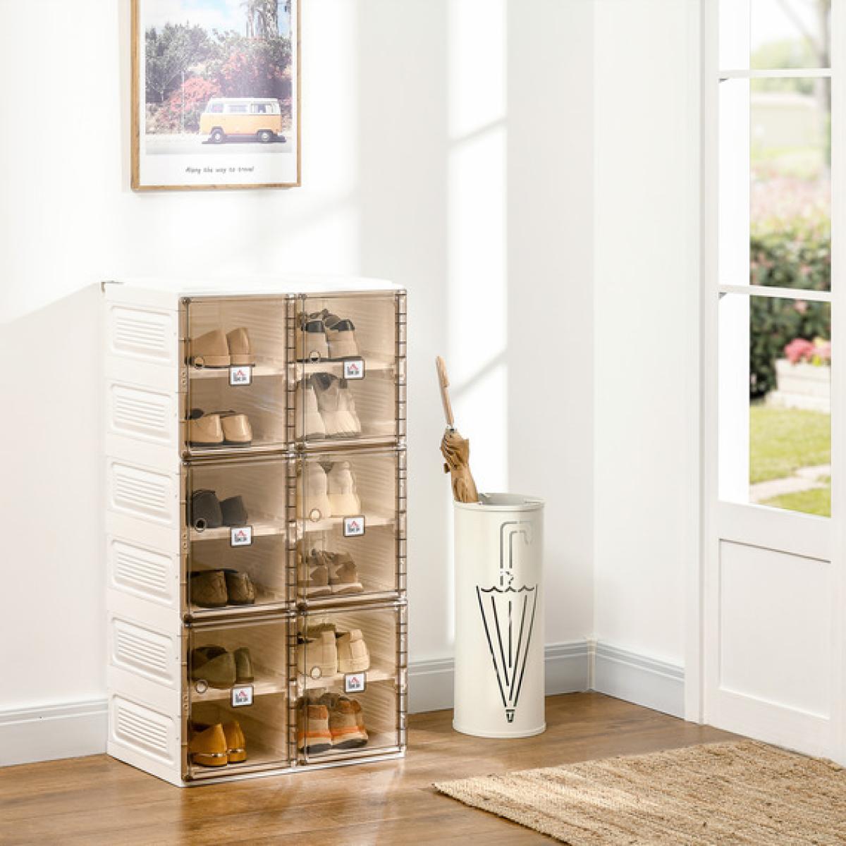 Plastic Shoe Storage Cabinet, Portable Cube Organizer - White, Brown