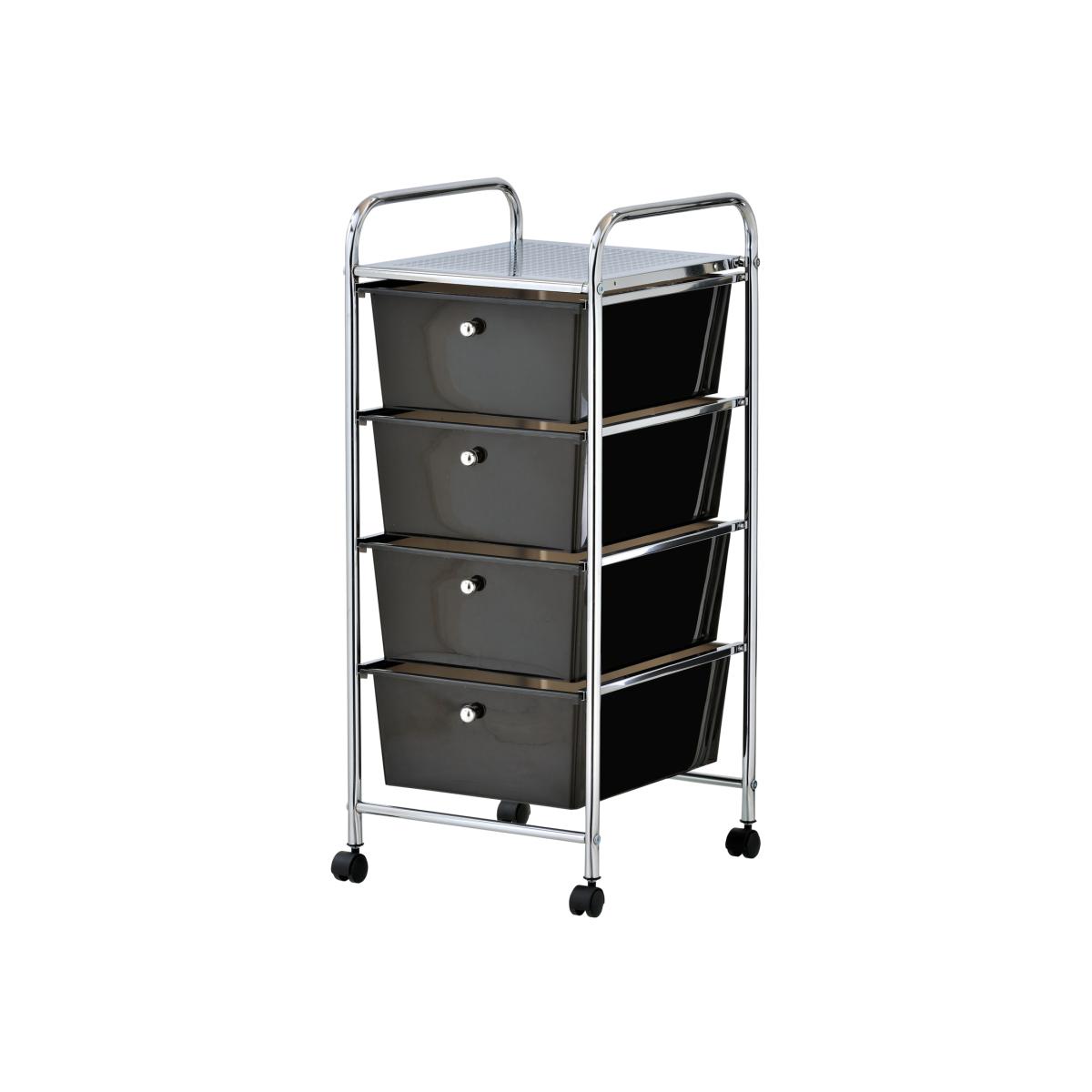 Introducing the Von Haus plastic storage drawers: the ultimate home storage solution. Whether you need a kitchen trolley, beauty trolley, or hairdressing trolley on wheels. Finished with contemporary chrome accents, get organised in style today. Regain order in your home with this trolley on wheels. Glide your goods from room to room with the four full-motion castor wheels, complete with locking brakes to keep everything secure even on laminate flooring. The four deep-fill drawers and wide top surface offer heaps of storage space, making it super easy to create (and maintain!) a clutter-free home. Constructed from wipe-clean plastic and steel, the trolley provides practical storage for busy family homes and hands-on work environments.