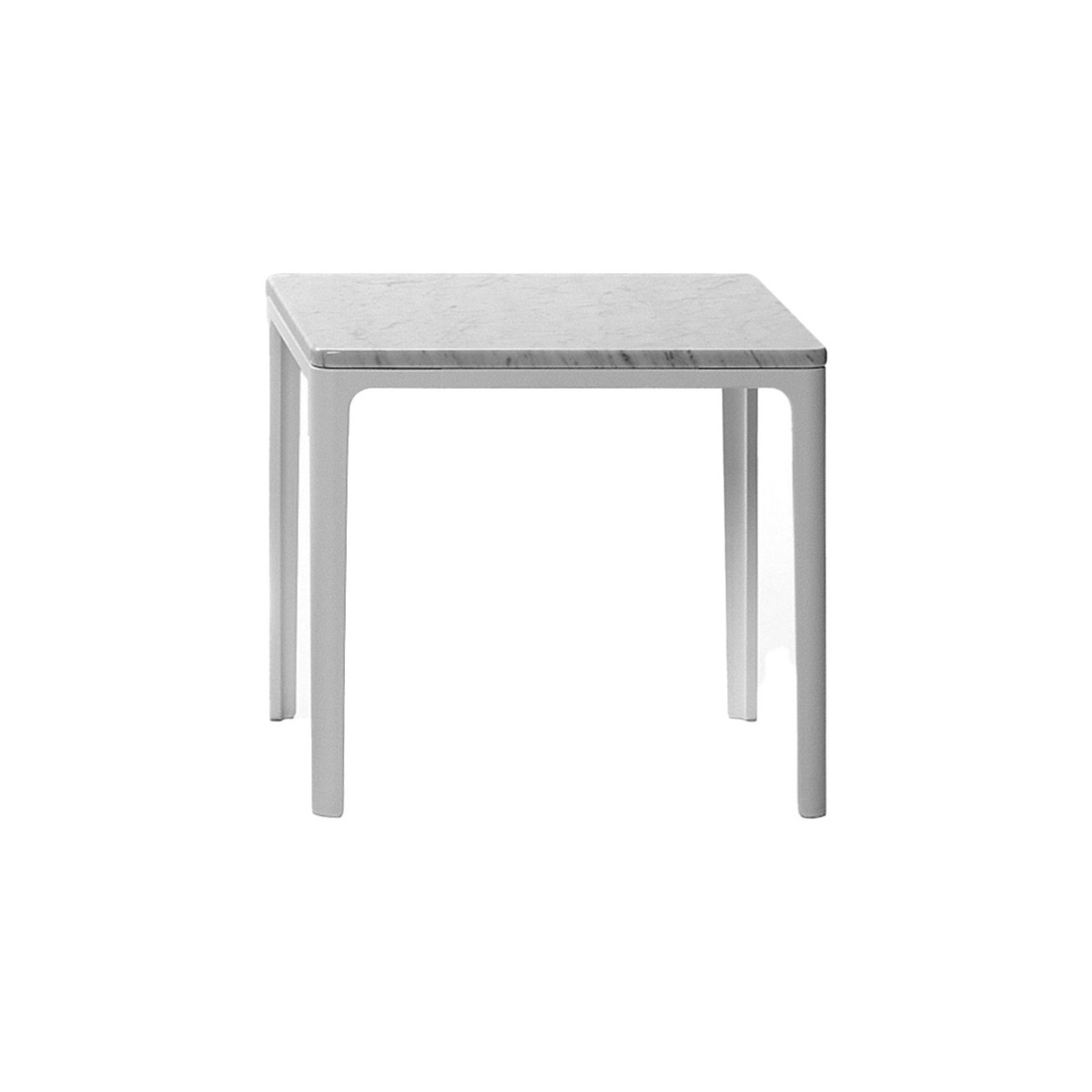 Designed by Jasper Morrison in 2014, the small Plate Coffee Table is recognisable by its delicately balanced proportions and clean, slender lines. With a base that presents subtly rounded contours, crafted from white powder-coated tubular steel, the small Plate Coffee Table's crowning glory is an elegant Carrara marble surface, which beautifully showcases the natural stone's delicate veining. Thin, elegant and starkly contemporary, the marble Plate Coffee Table by Jasper Morrison would enhance minimal living spaces with its modern subtlety and is available in a selection of bases and tops.