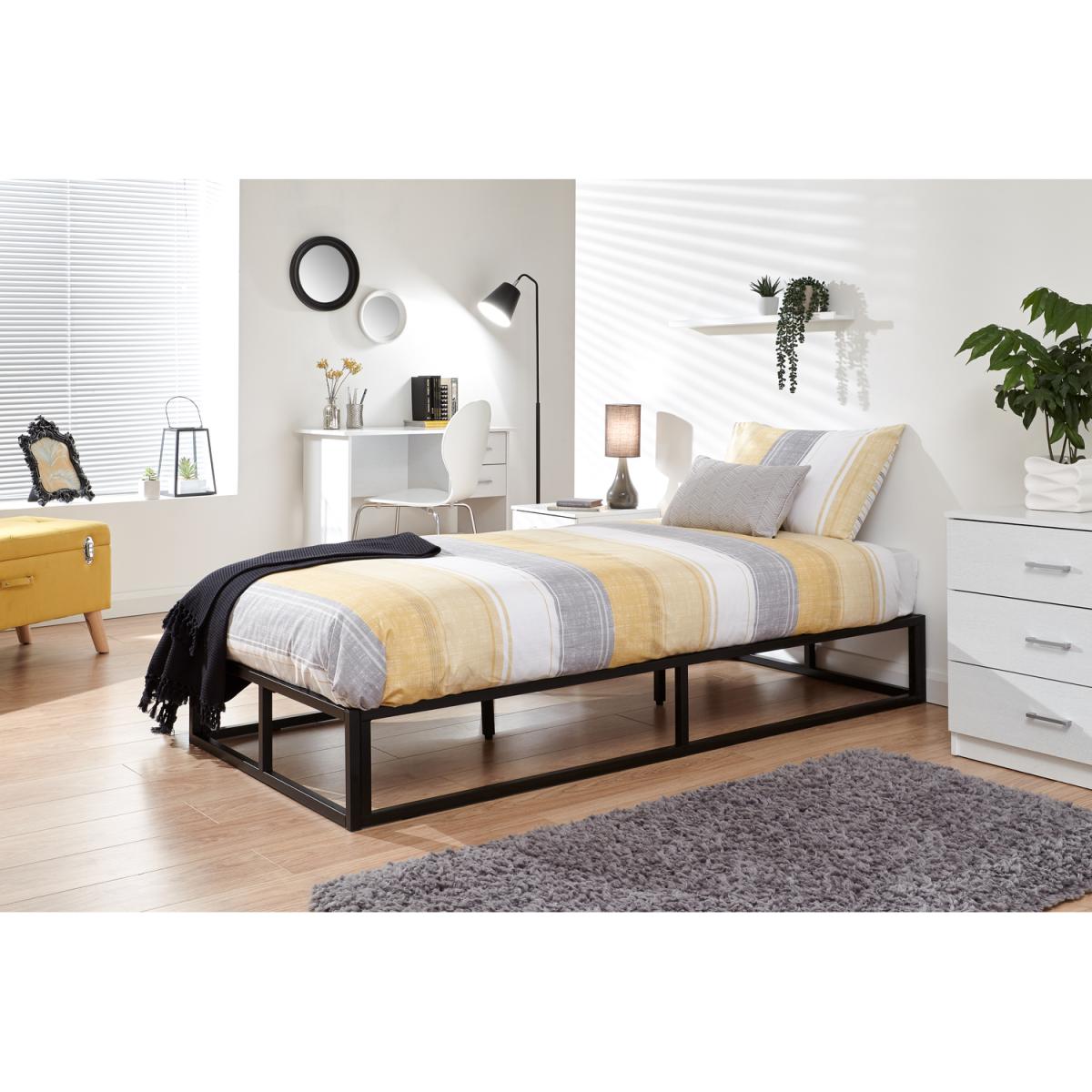 Taking styling cues from contemporary living designs, the loft-inspired Platform Bed collection brings a modern style to your bedroom. An effortless frame makes this collection ultra-versatile and able to complement a wide range of styles and colour schemes. The simplistic design features include an easy 12 bolt assembly process, strong and durable metal frame with thick wooden slats. All this is delivered in a box you can easily move throughout the home and up the stairs.