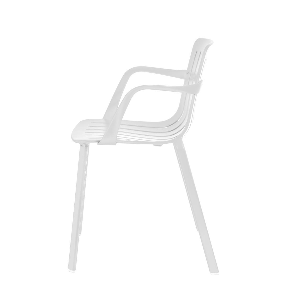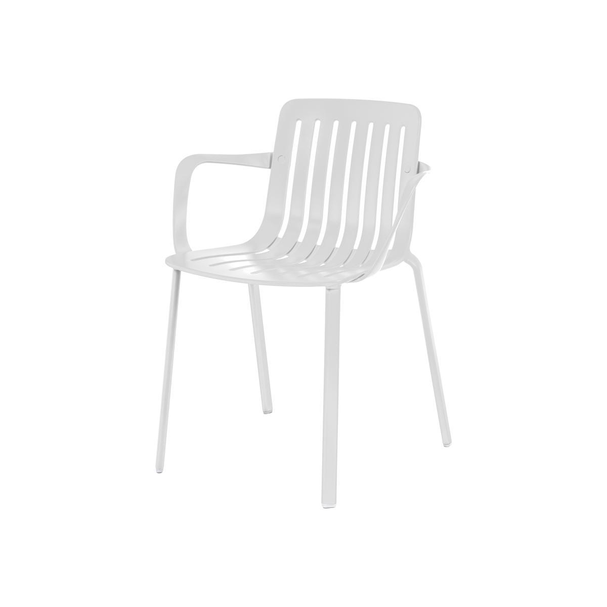 "A simple yet classic language that goes straight to the point. The creations of British designer Jasper Morrison are a reference in the world of design. His new Plato chair is certainly a future icon. Plato is a rigorous, minimalist, stackable chair, versatile and robust, suitable for indoor and outdoor environments. Sober with neoclassical inspiration, hence the name which refers to one of the pillars of ancient philosophy, the Plato chair displays a perfect balance between form and function, able to harmonise with all living spaces. Completely recyclable, the Plato chair has cast aluminium legs and a very thin slatted shell made of injected aluminium. The technology used creates a shell that is both thinner yet stronger than its plastic counterparts. With Plato, Japser Morrisson reduces the seat to its simplest expression: a hollow line without mass. Designer of the useful, Jasper Morrison follows a single requirement: that of improving our daily life by creating objects with a sustainable design. Achieving the minimum by drawing ordinary things towards nobility and beauty. As Jasper Morrison says: "As a general rule, special things are less useful than normal things". An affirmation that perfectly sums up his guiding principle when developing design projects, which is to create objects that are not "extra-ordinary" but rather "super-normal".