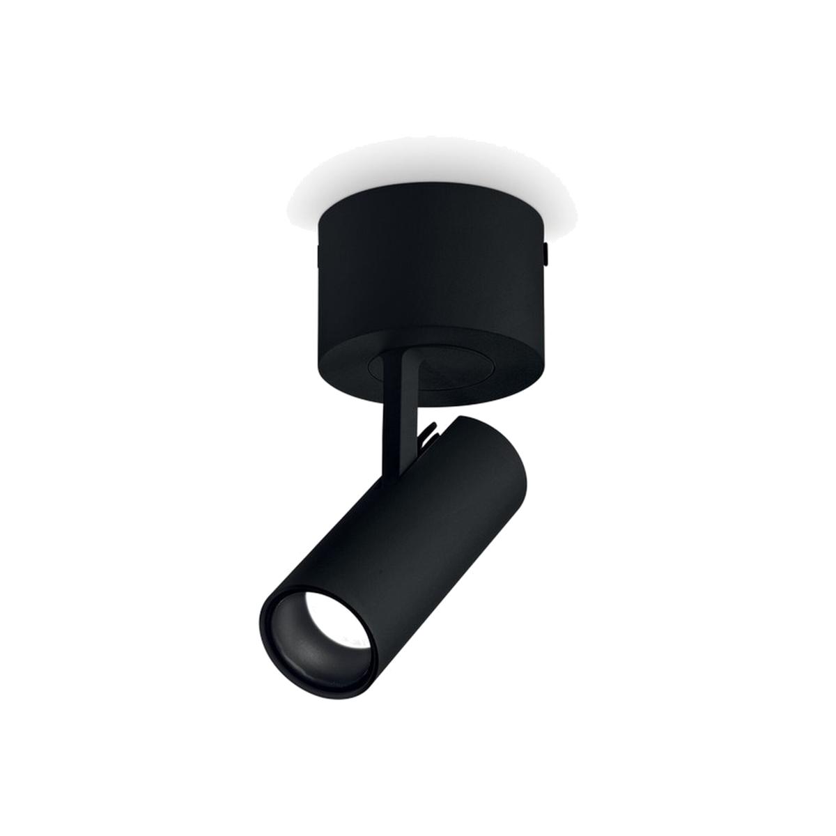 Light up your space with the versatile Play Adjustable Black Surface Mounted Downlight 3000. K 7. W. It has a slender lamp head that is adjustable to aim the light in any direction. Finished in versatile black this contemporary fixture is a great choice for many decorating styles.