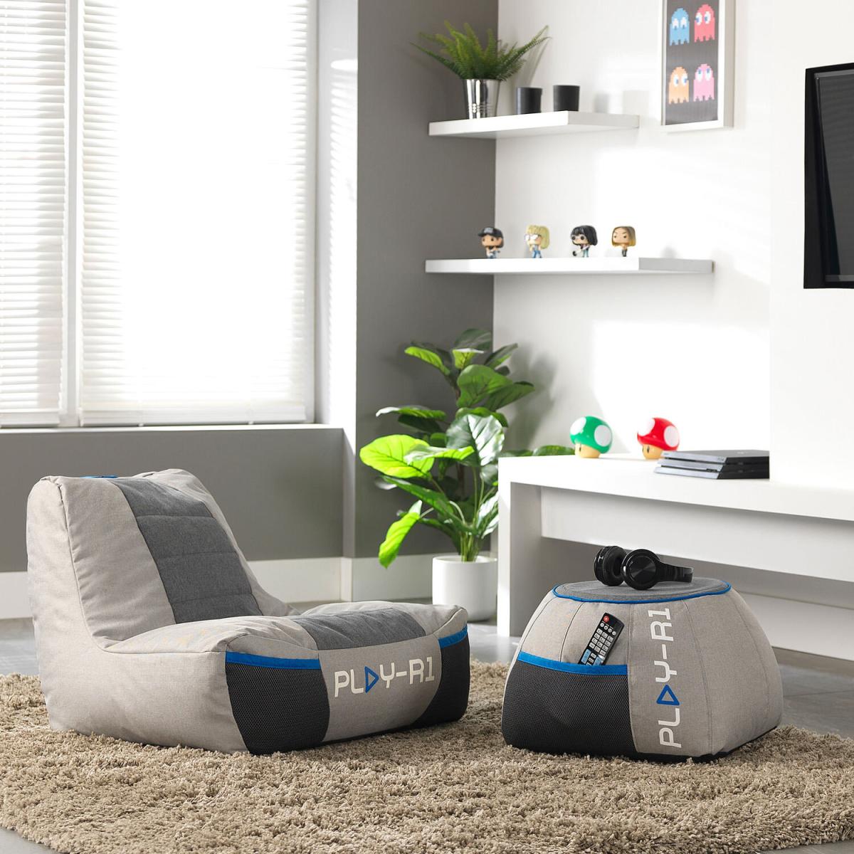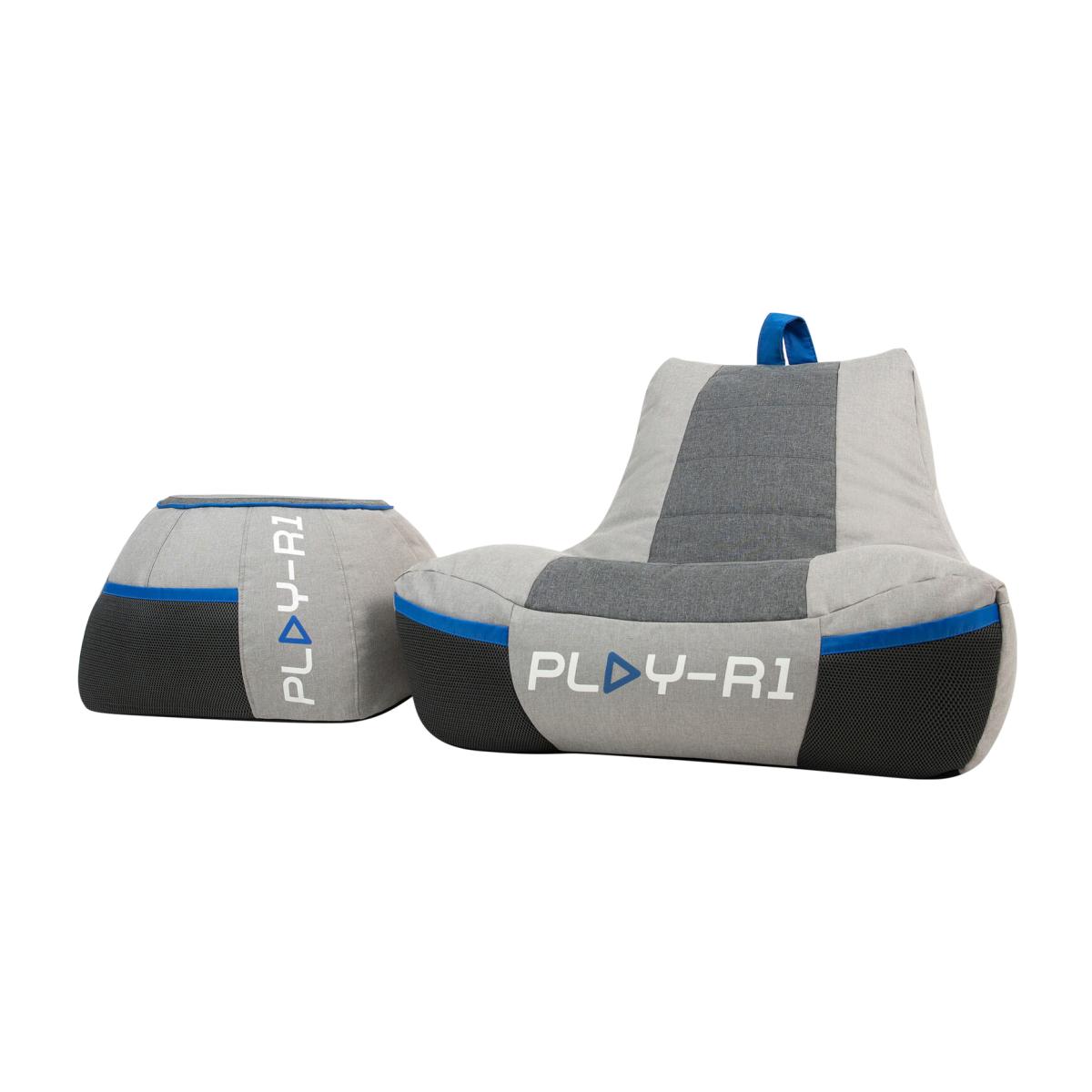 PLAY-R1 Beta Kids Gaming Bean Bag Chair and Footstool - Grey