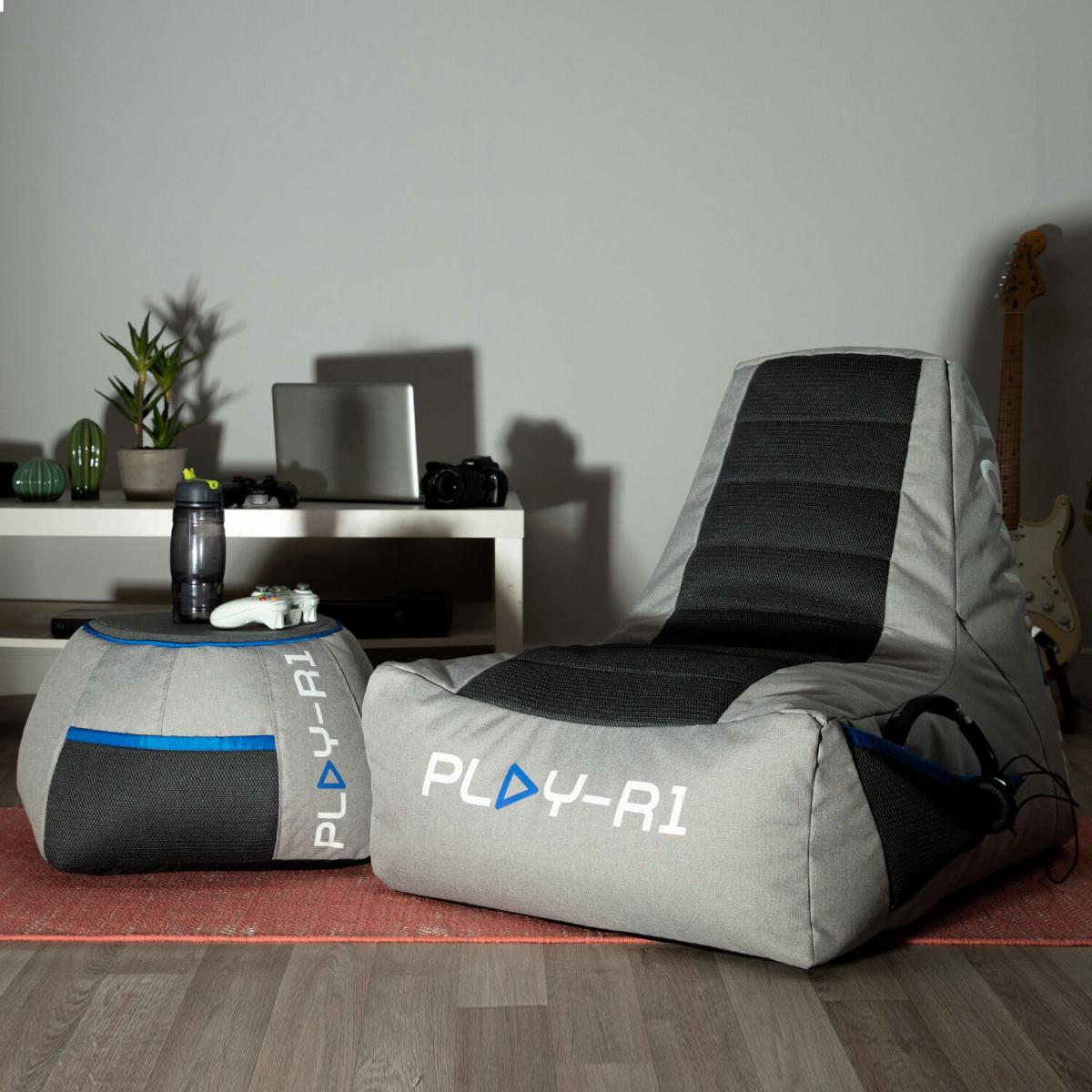 PLAY-R1 Meta Gaming Recliner Bean Bag Chair and Footstool - Grey
