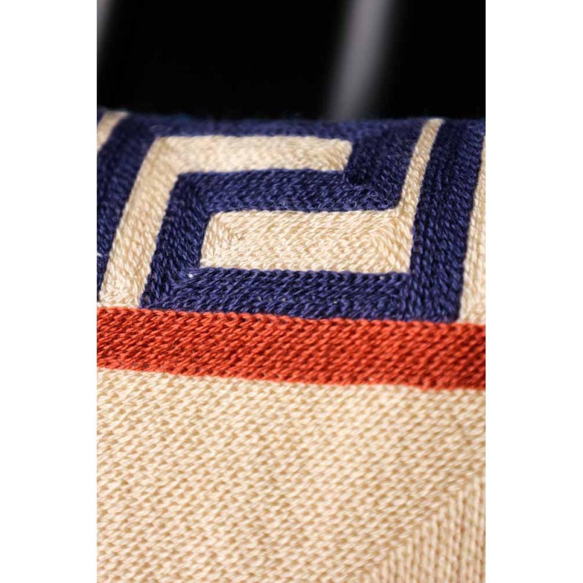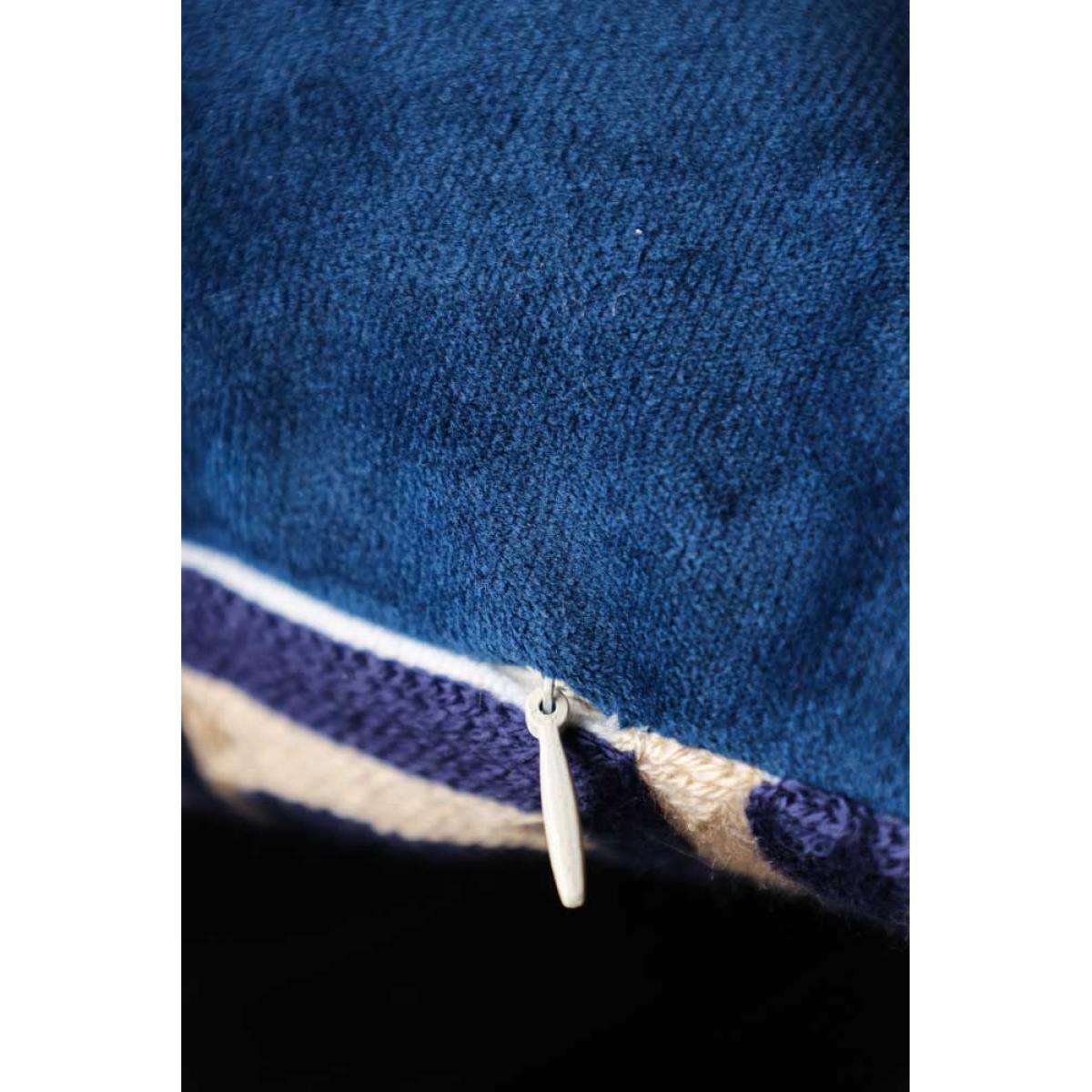 - Handmade needle thread stitched front - Navy blue velvet reverse - Includes inner foam cushion- Measures: 30cm x 50cm