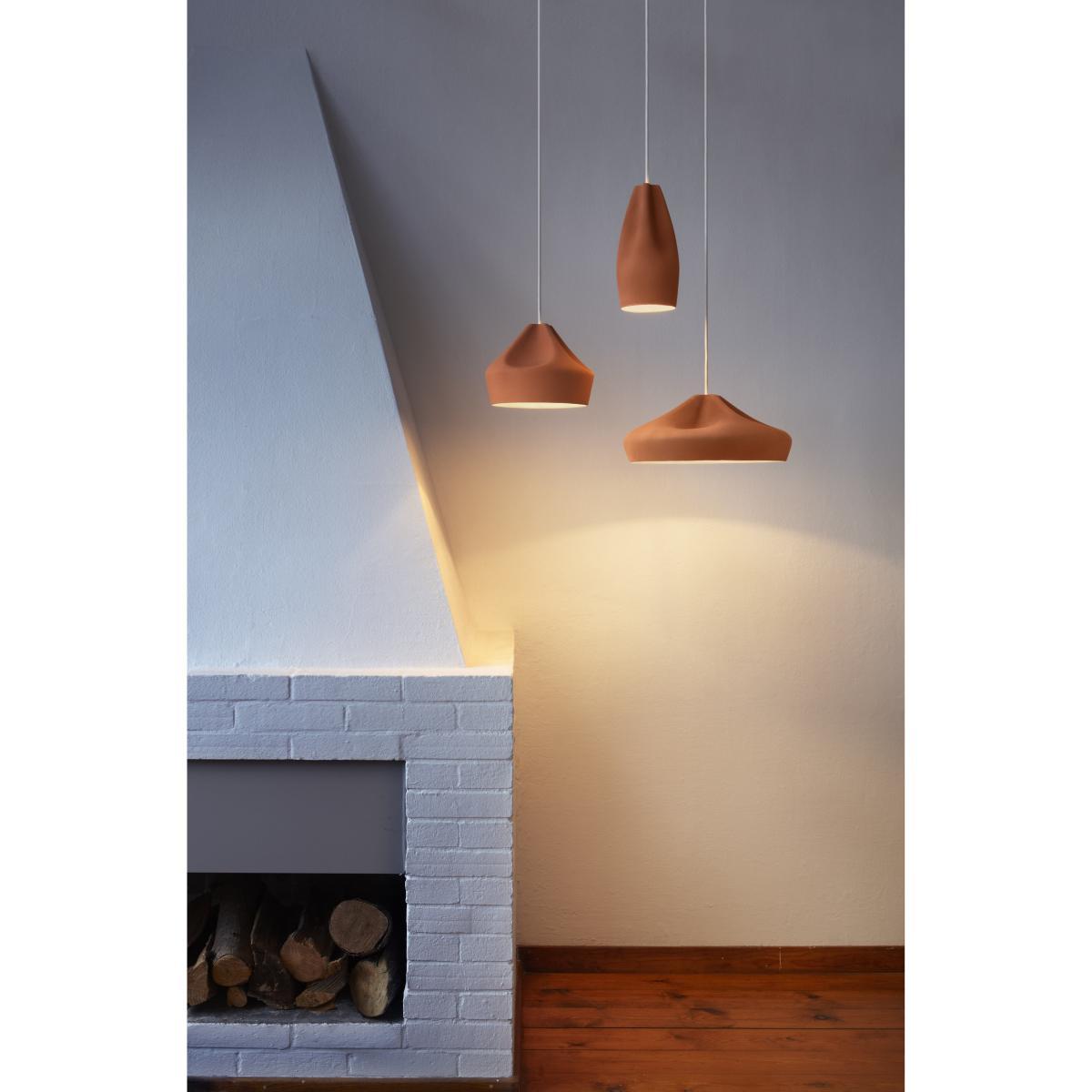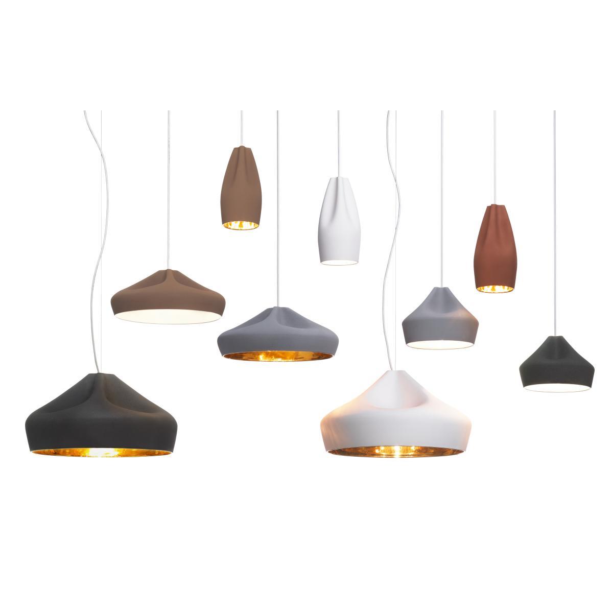 The idea behind the Pleat Box is that of a sophisticated combination between a digitally-designed crease in a piece of cloth, the silhouette of which is applied to a ceramic base. The outer part of the lamp is offered in white ceramic, brown, black, terracotta and grey –the result of recycling different enamels. The brilliant white enamel interior creates a glitter effect, which enhances the light from the lamp. It can also be supplied in gold on the inside, which generates an extremely warm light. Pleat Box has come about through the first-ever collaboration between Xavier Mañosa, a master ceramicist from Barcelona, and the Mashallah design studio in Berlin with Marset.