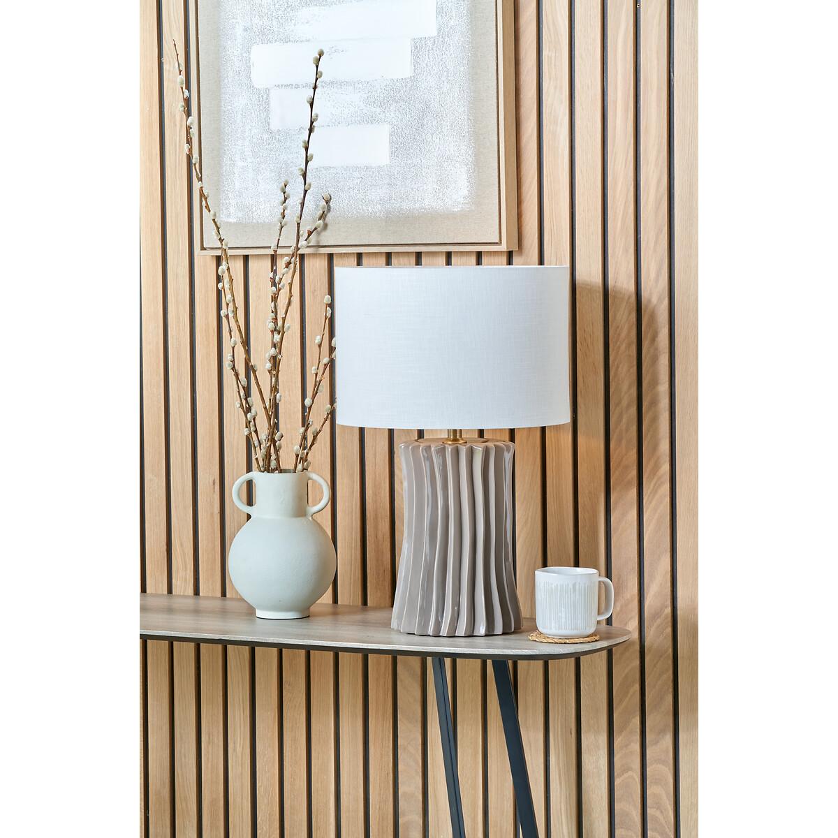 I love the pleated ceramic base for adding texture and subtle sophistication to various interiors. Its neutral tone and elegant pleating make it versatile, working particularly well in minimalist or Scandinavian-styled spaces. You can style it on a sideboard, bedside table, or console for a cohesive look. To keep the look balanced, pair it with simple, understated lampshades and complement it with natural materials like wood or woven textures. It’s a practical choice for bringing a touch of visual interest without overwhelming the space.