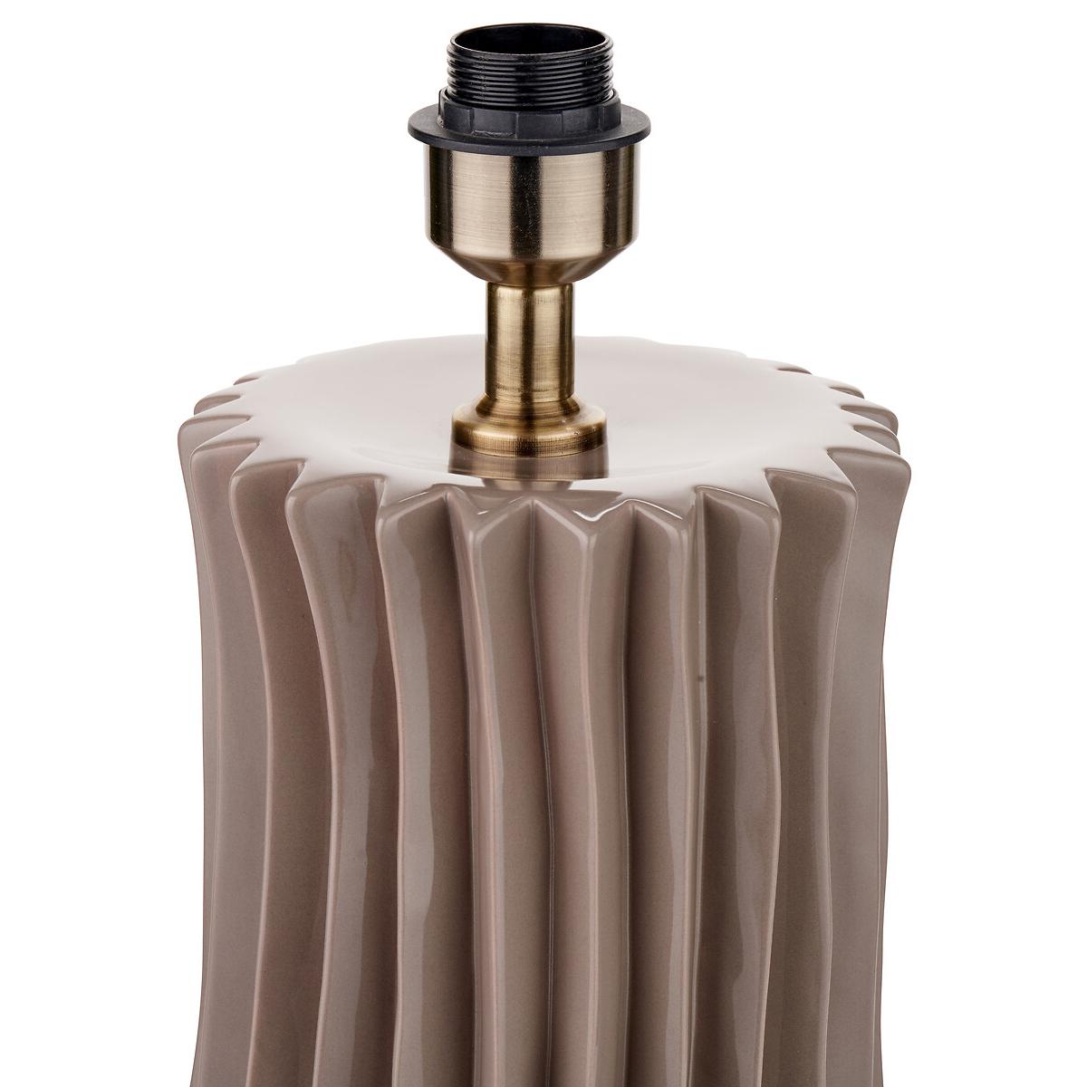 Illuminate your space with style and elegance, with our ceramic table lamp base. The intricate pleated detail creates a stunning ridged texture and is finished in a stunning neutral, taupe glaze. This table lamp base is a true work of art. Recommended lampshade size of 35cm diameter. Product Dimensions: 19 x 19 x 36cm. Composition- Ceramic. This product will be dispatched by one of our trusted suppliers. You’ll be contacted by their selected courier about your delivery.