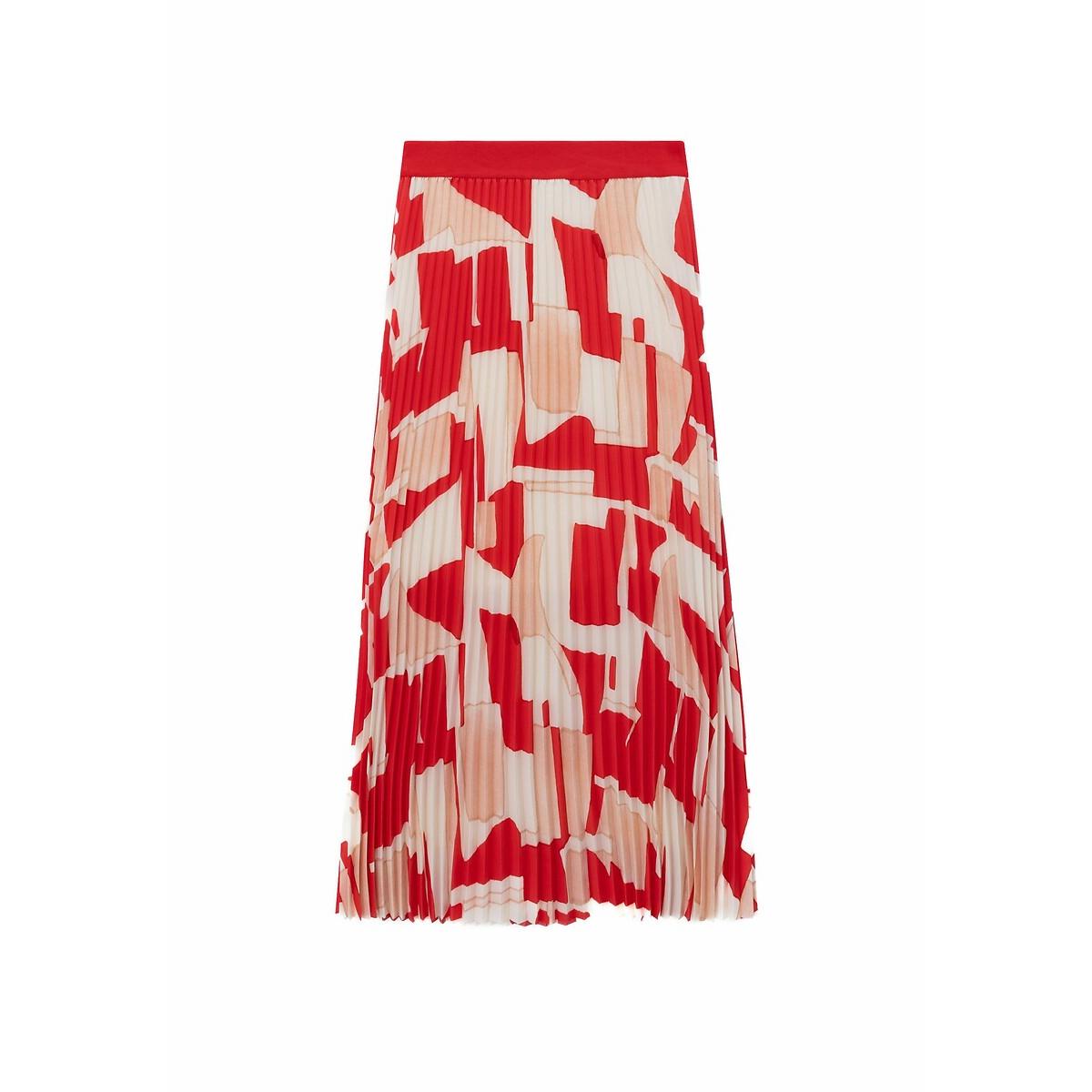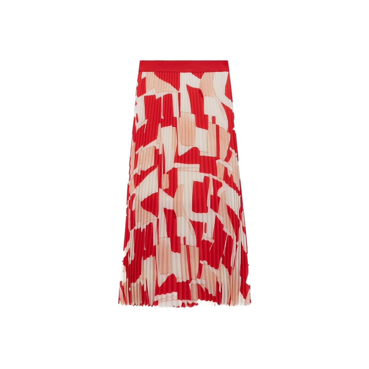The Ikks women's maxi skirt features a geometric print on a pleated fabric. A mix of modernity and retro look for an elegant, graphic skirt with a flowing, flared cut. Ideal in town, on holiday or for events. Product details • Style: pleated • Maxi • Graphic print • Flared, flowing cut • Plain band at the waist • Lined Fabric content and care advice • Main fabric: 95% polyester, 5% elastane • Lining: 100% viscose • Please refer to the care instructions on the product label