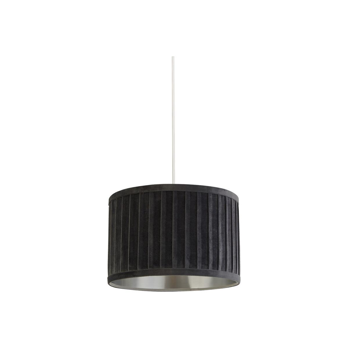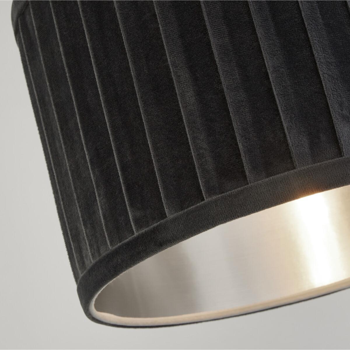 Pleated Velvet Grey Lampshade with Metallic Silver Inner
