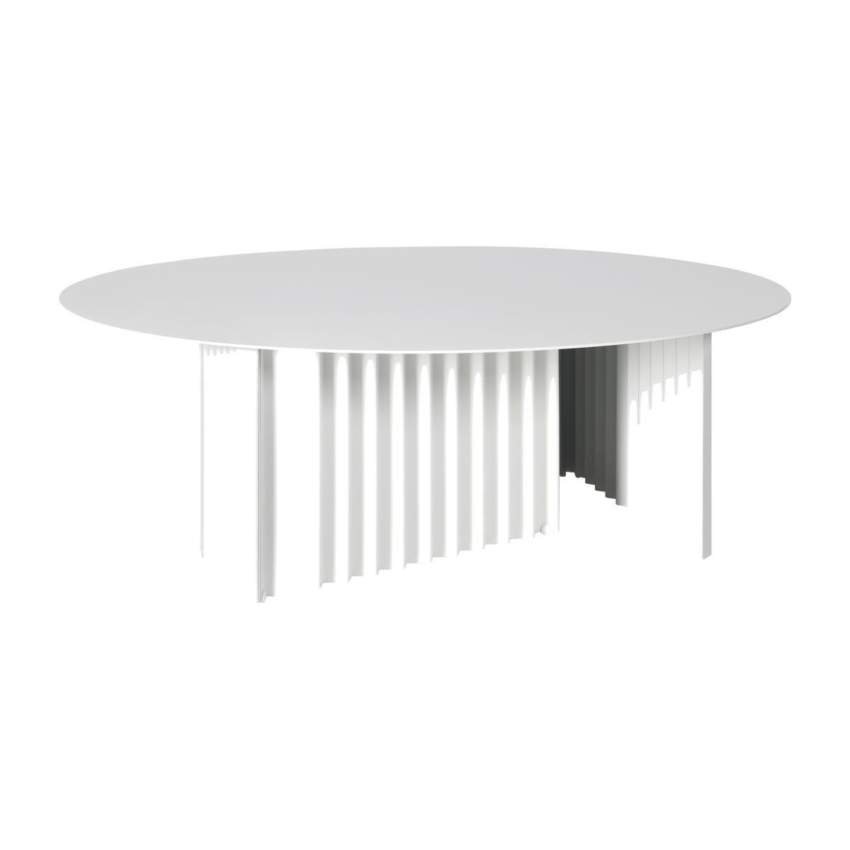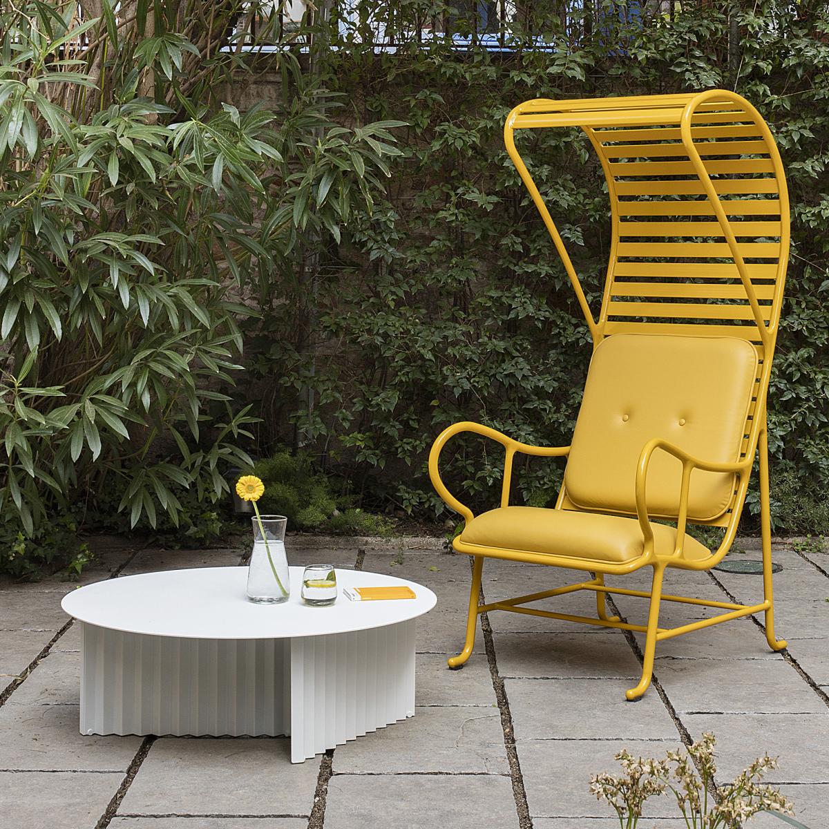 The art of folding... Plec is a collection of cheerful coffee tables, available in a superb palette of bold colours. These tables reinterpret the codes of industrial design thanks to their subtly worked shapes (obtained by folding) and superb chromatic range. Plec tables stand out with their sheet steel legs, folded like an accordion. This sculptural base adds a very graphic, contemporary dimension. The folds create effects of light and shadow: surprising chromatic variations which change according to the lighting. Plec tables come in two versions: with a steel or marble top. The solid shapes of the steel base give them an industrial touch, while the marble finish is synonymous with elegance. Plec tables are weatherproof and can be used indoors or out. Highly versatile, the three dimensions allow a wide variety of uses: night table, coffee table in front of a sofa, side table in your garden, surrounded by plants and flowers. Plec tables can be used both separately and together to form a beautiful composition. The Plec table collection fits stylishly into any decor and space.