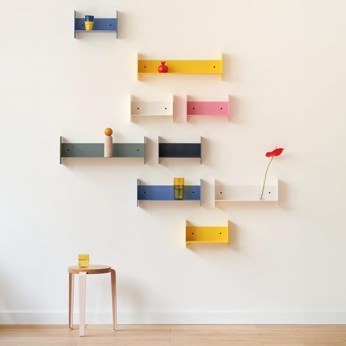 The PLI wall-mounted shelf combines functionality and elegance. Crafted from folded sheet metal, this shelf features clean lines and a sleek aesthetic, ideal for adding a contemporary touch to your interior.
