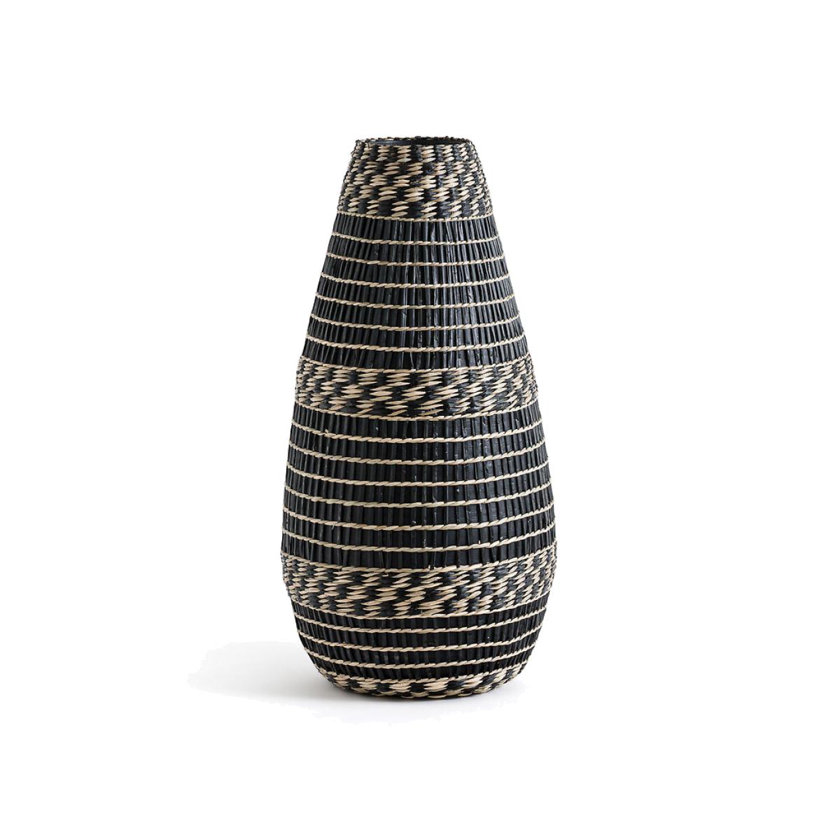 The rigid Plooming jar has a bohemian style highlighted by superb two-tone braiding work which will delight fans of the natural trend in the home. Product Details • Natural bamboo structure • Tinted woven bamboo • Decorative use only, do not fill with water • Hand-crafted, each piece is unique: colours and dimensions may vary from product to product. Dimensions • Diameter: 26cm • Height: 53cm. Dimensions and weight of parcel1 parcel • L28 x H55 x D28cm. 2.1kg