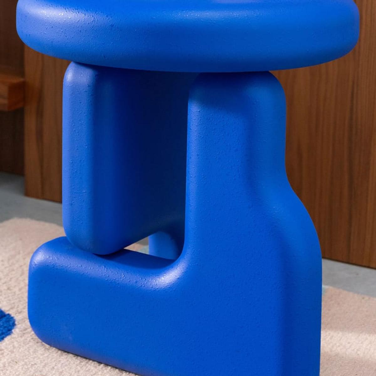I love this little side table because of its bold, modern design and versatile colour. It's perfect for contemporary interiors that embrace colour and personality, especially in living rooms or bedrooms where a pops of blue can add vibrancy. Its compact size makes it ideal next to a sofa or bed for holding a lamp, drinks, or books, while its unique sculptural shape adds visual interest. For styling tips, try pairing it with neutral or minimal decor to let it stand out, or combine with other colourful accessories for a playful look. Its sturdy wood construction ensures durability, making it both a functional and eye-catching addition to any space.
