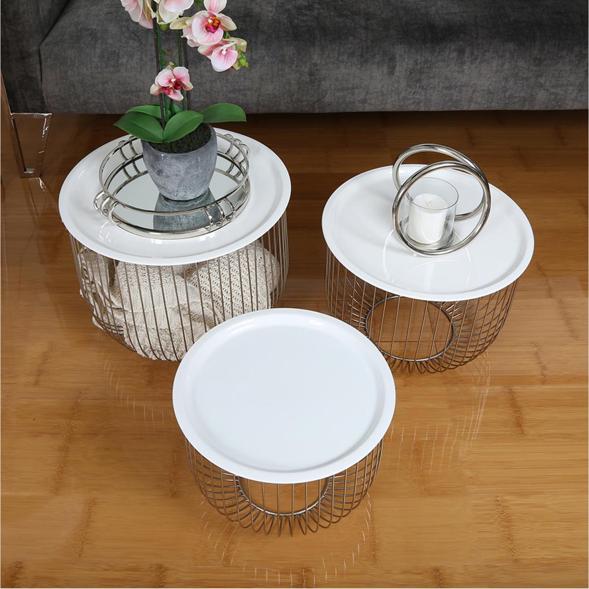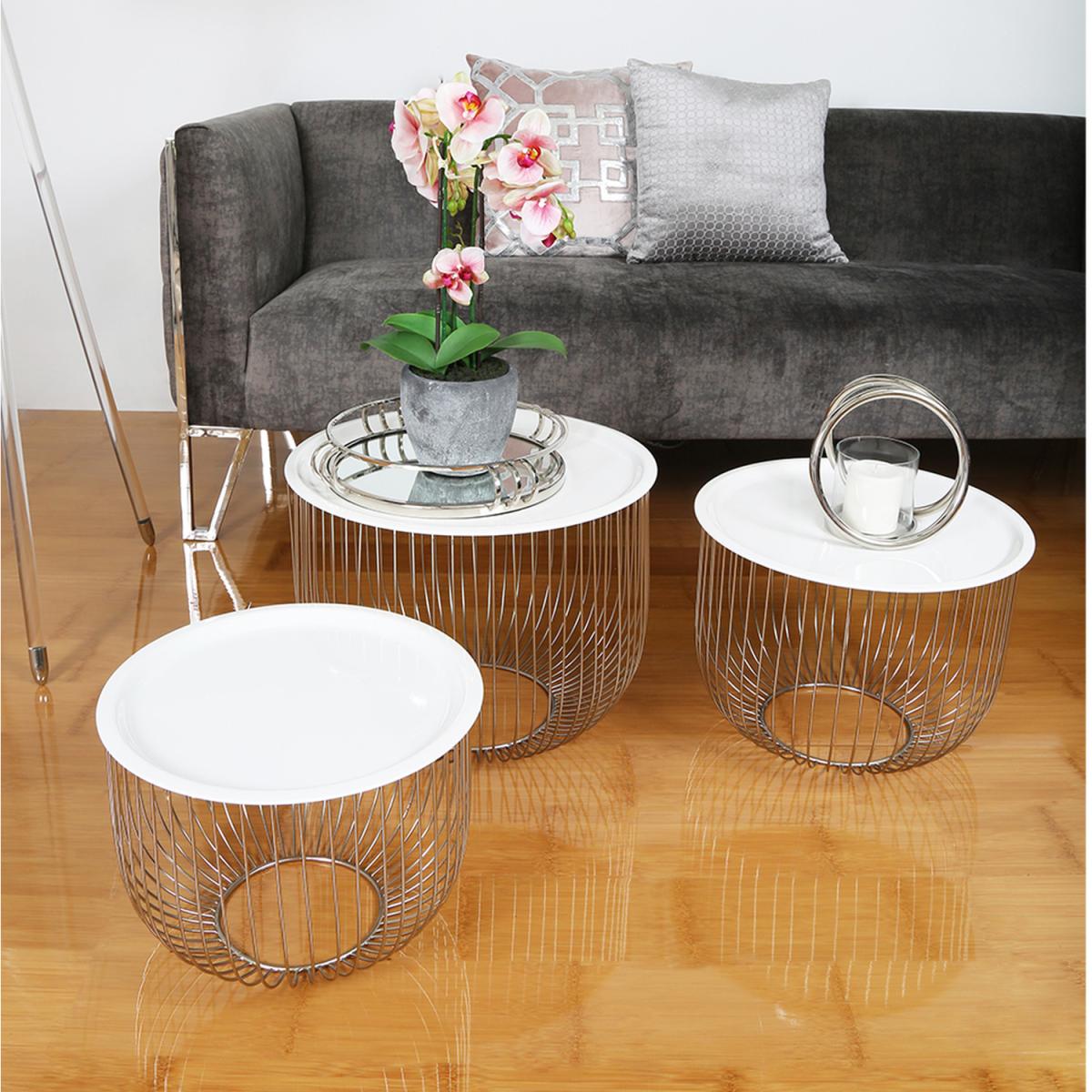 Entertain in style with this delightful nest of tables. Featuring 3 small to large tables that have a chrome base and white table tray-style top. The tables can be used ideally as coffee tables or as nesting side tables offering additional storage for your essentials. Tray top is removable and surface is finished with melamine.