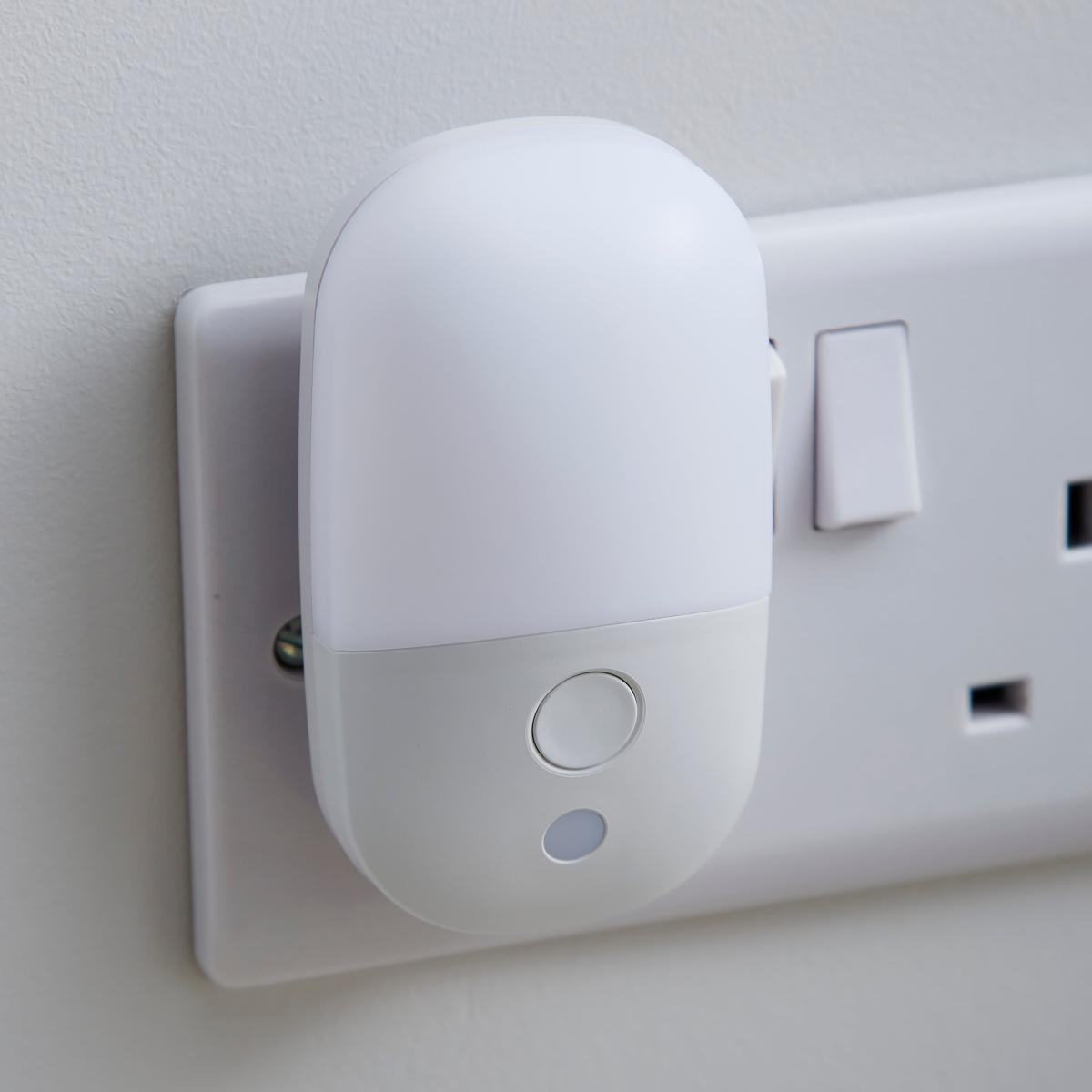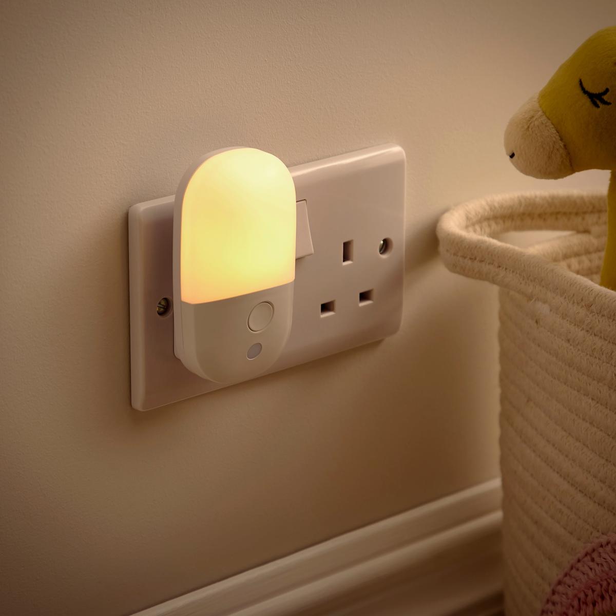 * Simple, Plain Design* Dimmable Features* Built-In Light Sensor Light your way effortlessly with the Plug In Night Light. Featuring a simple and elegant design, this night light provides a soothing warm-white glow. Choose from three dimmable brightness levels to create the perfect ambience for any time of night. Its built-in light sensor ensures hands-free illumination whenever you need it - perfect for those midnight trips or a calming night light for your little one.