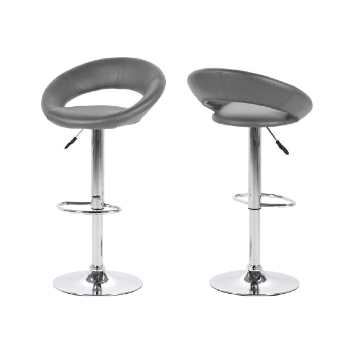 With a sumptuous Leather Look PU seat, the Plump grey barstool will bring a touch of style and modernity to your dining area or bar. A Chrome Trumpet Base with footrest offers a sturdy but sleek edge. The Gas Lift seat offers adjustable height in an instant. Self Assembly. Product Dimensions W: 56cm D: 50cm H: 100cm.