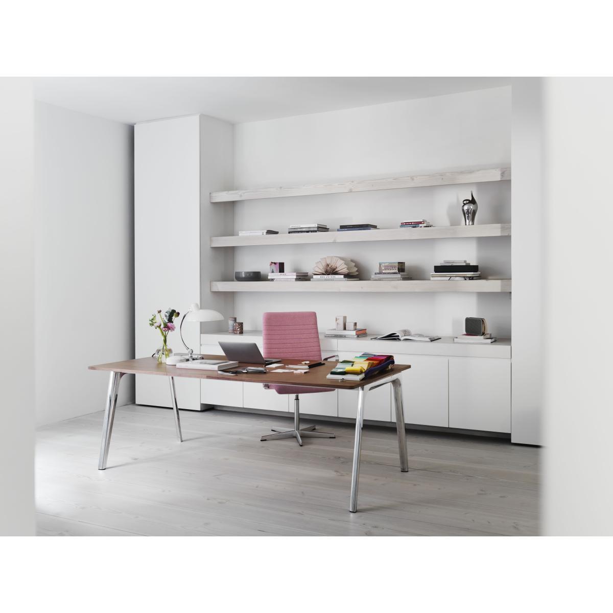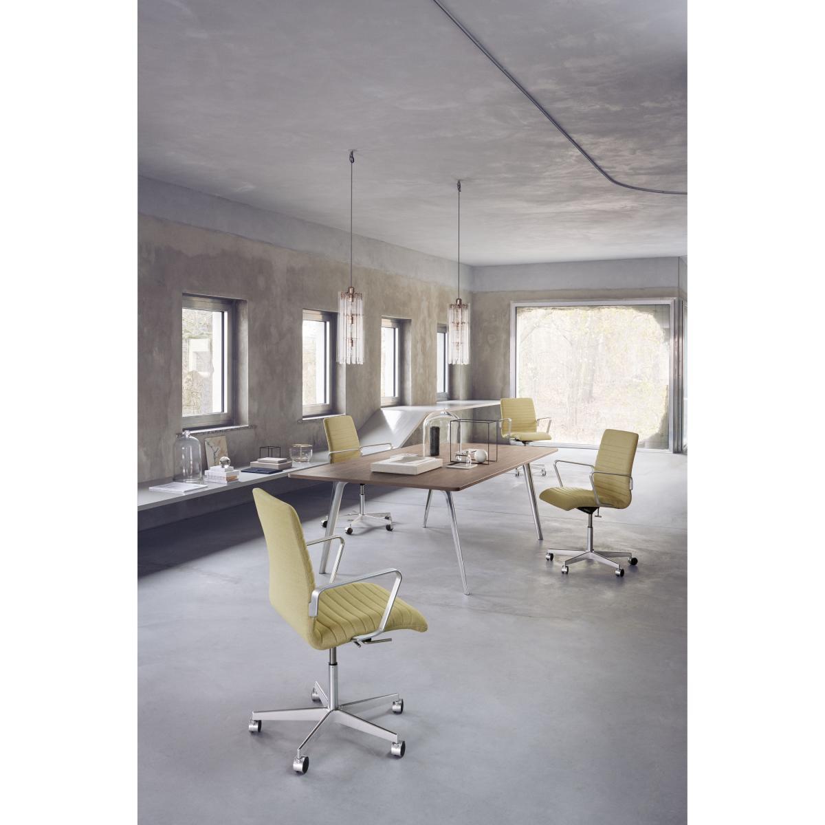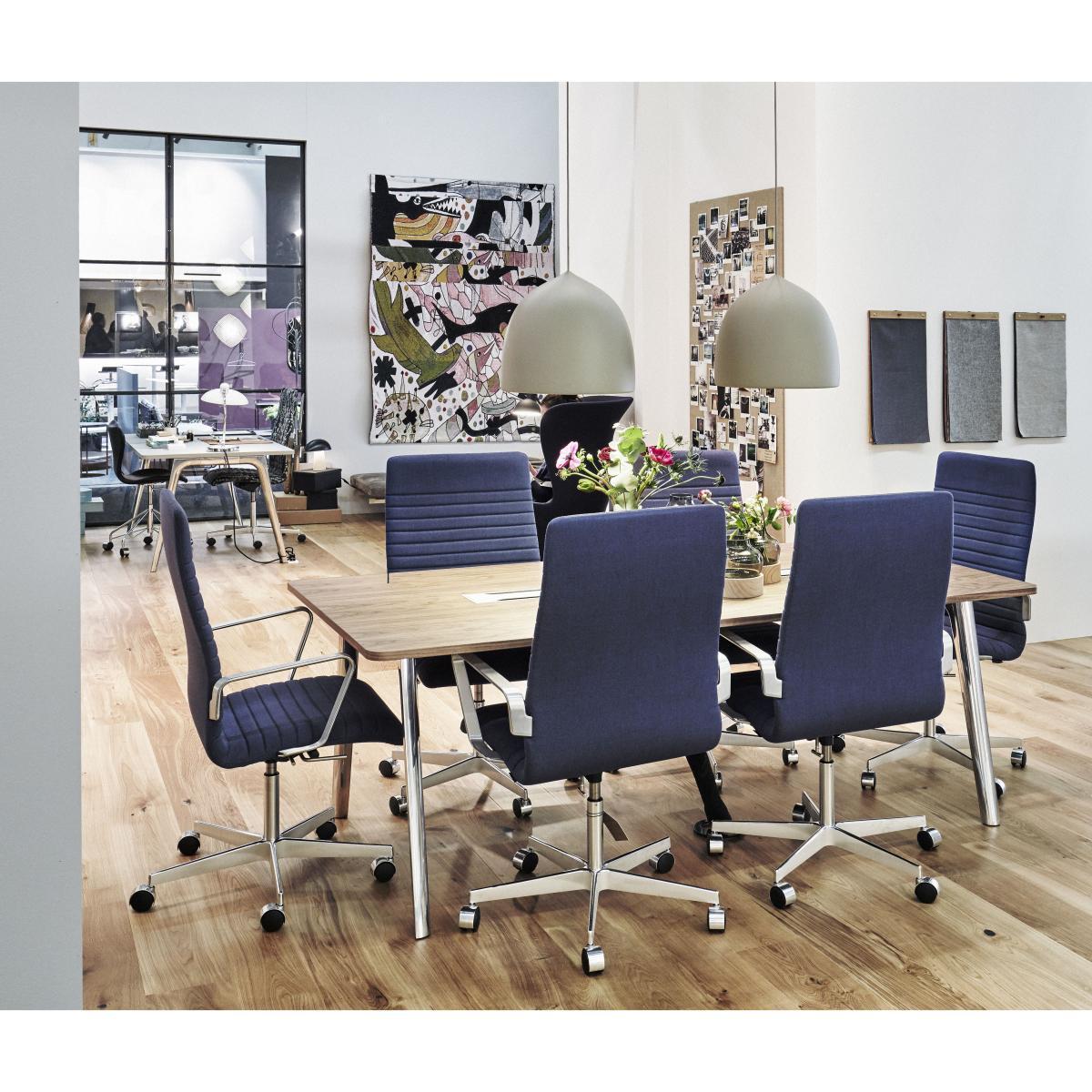 Pluralis is a table that's open to possibilities. As its Latin name implies, Pluralis pertains to more than one. Meaning, more than one type of situation, setting, occasion or meeting. Designed for the contemporary work culture, Pluralis can adapt to any kind of communication exchange you have in mind. The legs of the base are positioned and shaped in such a way that the user will always be met with a soft circle creating an invitation to come closer and use the table. The base is crafted in pressure die casted aluminium and the rails are extruded aluminium.