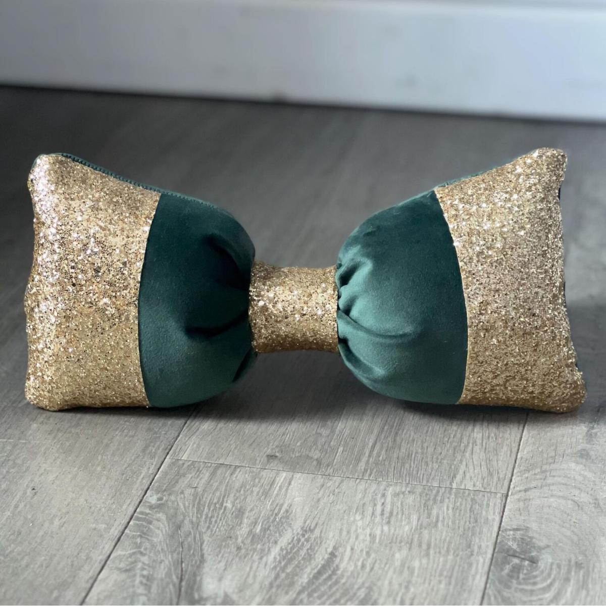 Plush Emerald Green and Gold Corner Sparkly Bow Cushion - Emerald Green