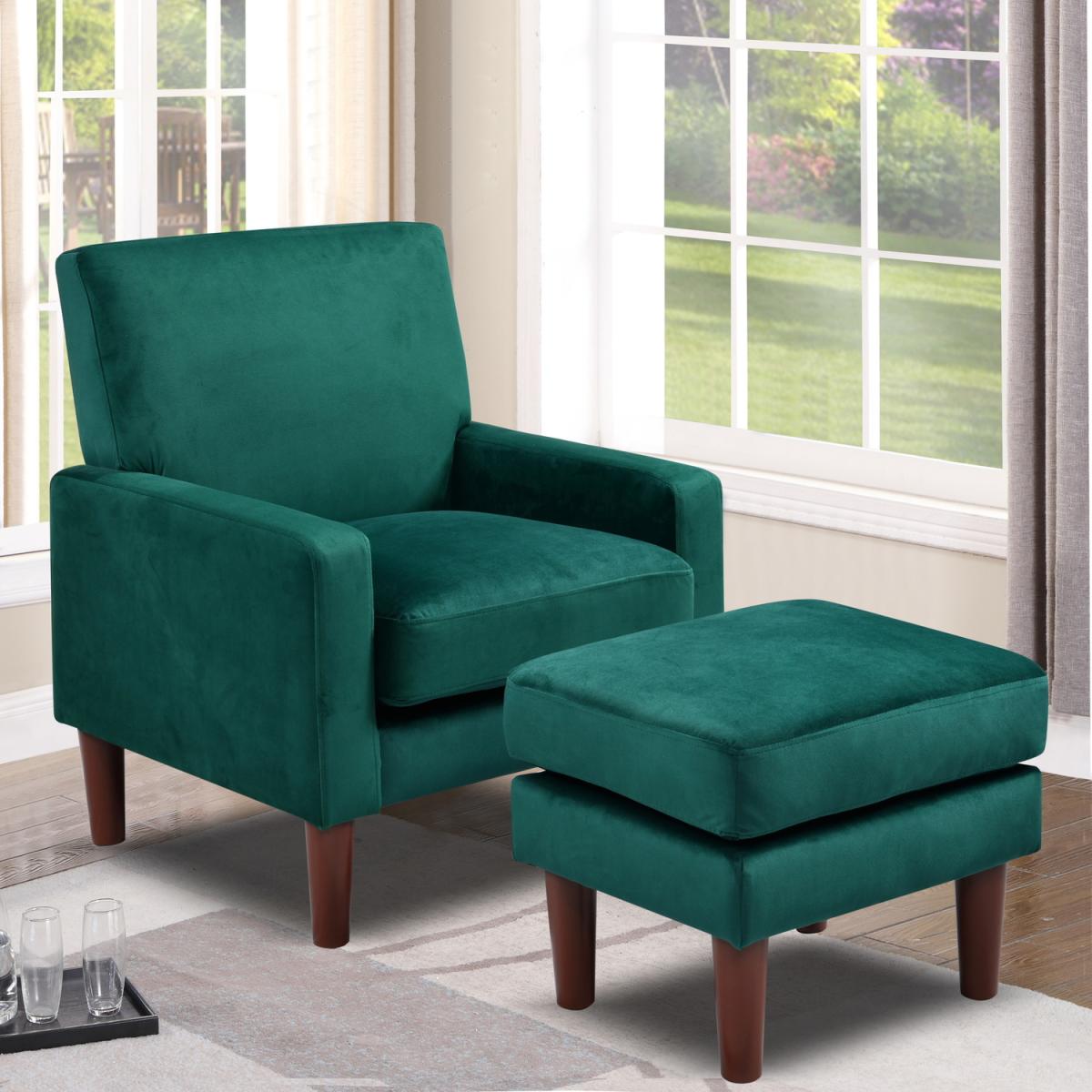 This plush velvet armchair and footstool is the perfect addition to your living space. You can settle back in comfort with your feet up with this stunning modern set. Available in either grey, green, blue or pink, there is a choice of colours to compliment your existing decor. Please be advised that all dimensions are approximate, please allow room for slight variations.