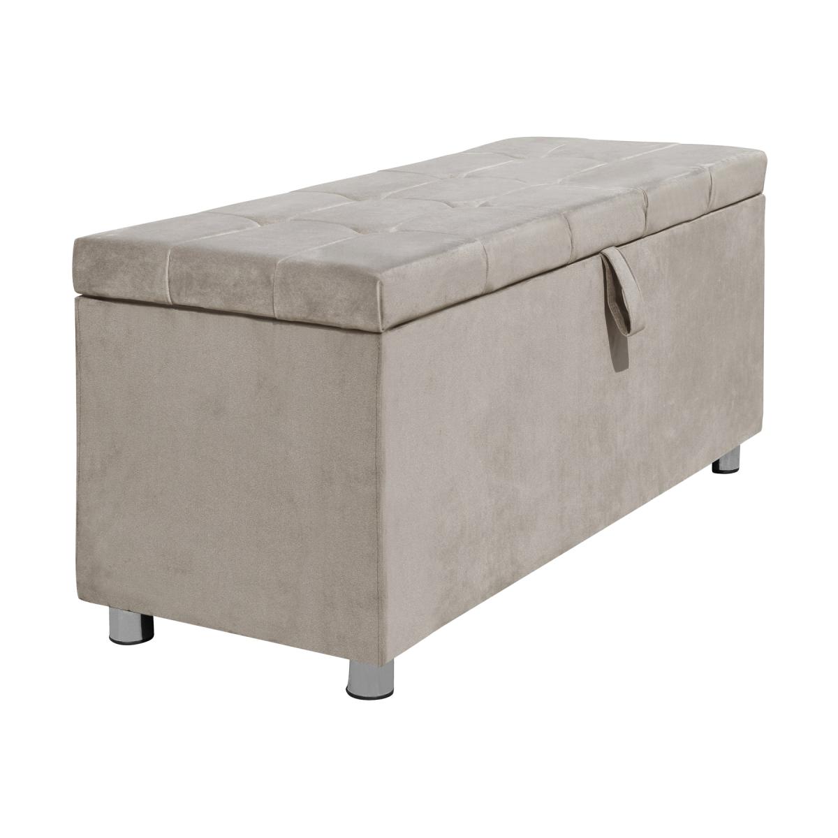 This deep Bedroom Ottoman Storage Box will provide a cosy extra seat in your bedroom and provide handy compact storage for your bedding and blankets. Upholstered plush velvet fabric, this Ottoman storage box is a quick and stylish update to your bedroom, that can be placed at the end of your bed, under your windowsill, or at a dressing table to serve as an additional seat, as well as a storage unit. Ideal for storing larger items such as bedding or blankets, this ottoman will help to keep your room organised and tidy whilst preserving floor space. This storage ottoman is finished with chrome feet.
