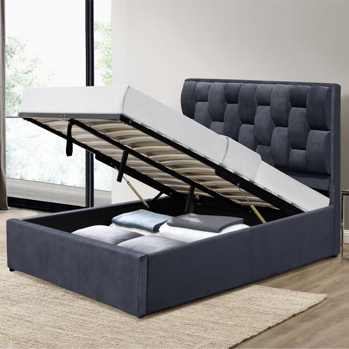 Plush Velvet Weaved Headboard Storage Ottoman Bedframe In Grey - Double