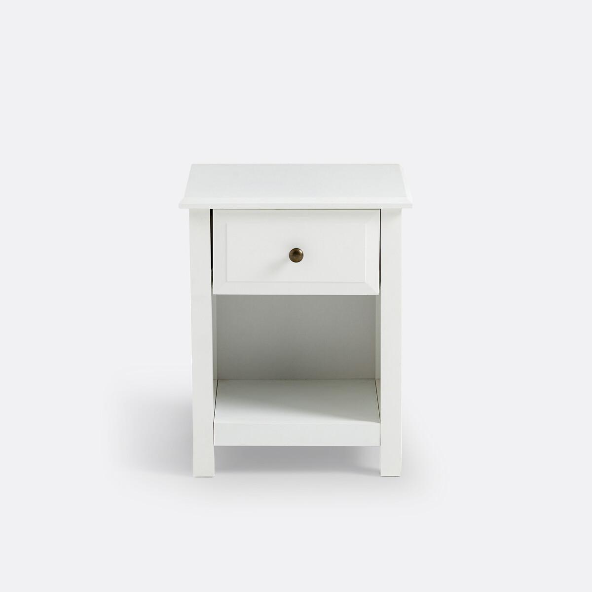 The Plutime bedside table is a versatile and charming piece that works well in both classic and contemporary interiors. I love its clean, simple lines and the subtle knot details on the drawer front, which add a touch of character without overpowering the space. It’s perfect for adding practical storage to a bedroom while maintaining a streamlined look. For styling, consider pairing it with soft linens and a cosy bedside lamp, or layer with decorative books and small plants to create an inviting, lived-in feel. Its neutral white finish allows it to integrate seamlessly into colour schemes from scandi minimalism to coastal or traditional settings. Keep accessories minimal on top to highlight its clean design, and utilise the open shelf for baskets or decorative items to maximise functionality.