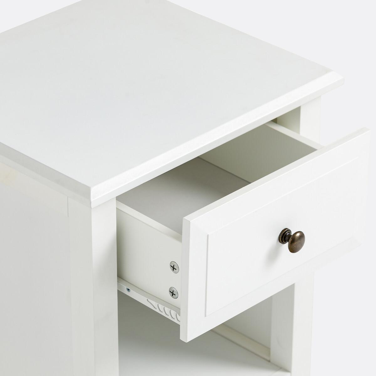 The Plutime bedside table with 1 drawer. This bedside table has a classic style with updated finishes. Product Details • 1 drawer on metal runners • MDF • Lacquered acrylic finish • Metal knob Dimensions • Width: 40cm • Height: 50cm • Depth: 35cm • Useable drawer dimensions :L24 x H8 x D23.1cmDelivery:. Assembly required. Available for home delivery. Note! Please check that all access points are large enough to accommodate your delivery (doors, stairs, lifts).Parcel Dimensions:1 parcel • L58 x H15 x D44.5 cm • 11.1kg