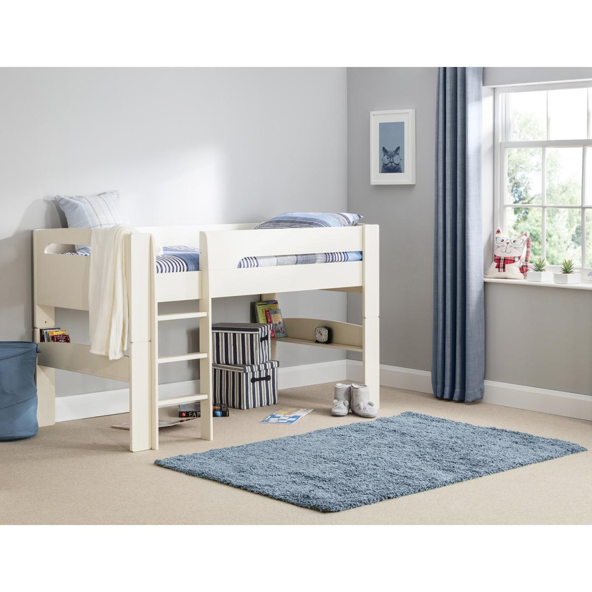 The Pluto Midsleeper is a sturdy and stylish mid-sleeper finished in a smooth dove grey lacquer. Pluto's contemporary design is accompanied by great functionality, with a robust ladder that can be assembled on either left or right and the capacity to convert to a single bed if required at any time in the future. It can be used on its own or paired with the extensive Julian Bowen Cameo Bedroom collection while pairing it with the Pluto Star Tent (sold separately) in either pink or blue will turn the Pluto mid-sleeper into a fun and vibrant play space for kids to enjoy.