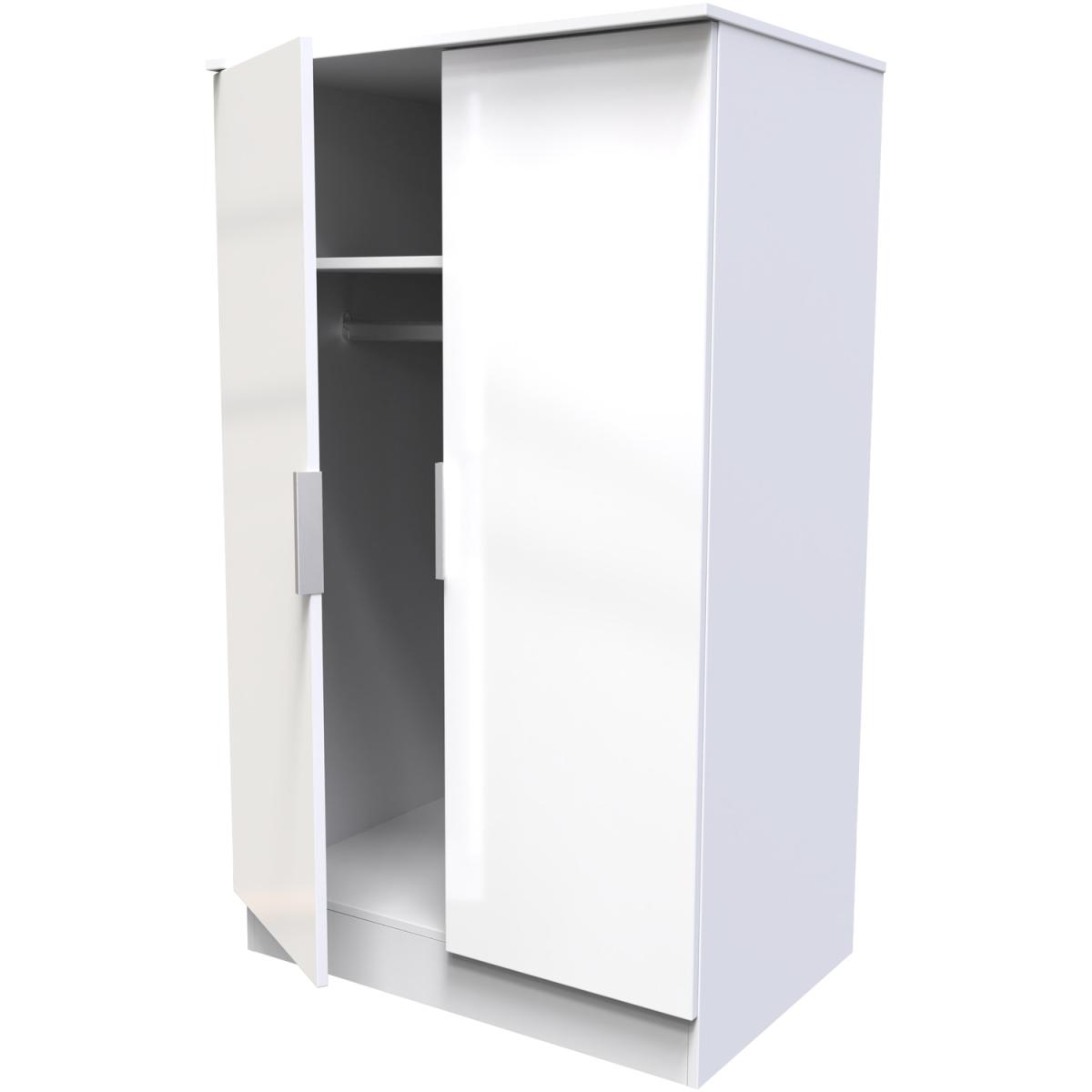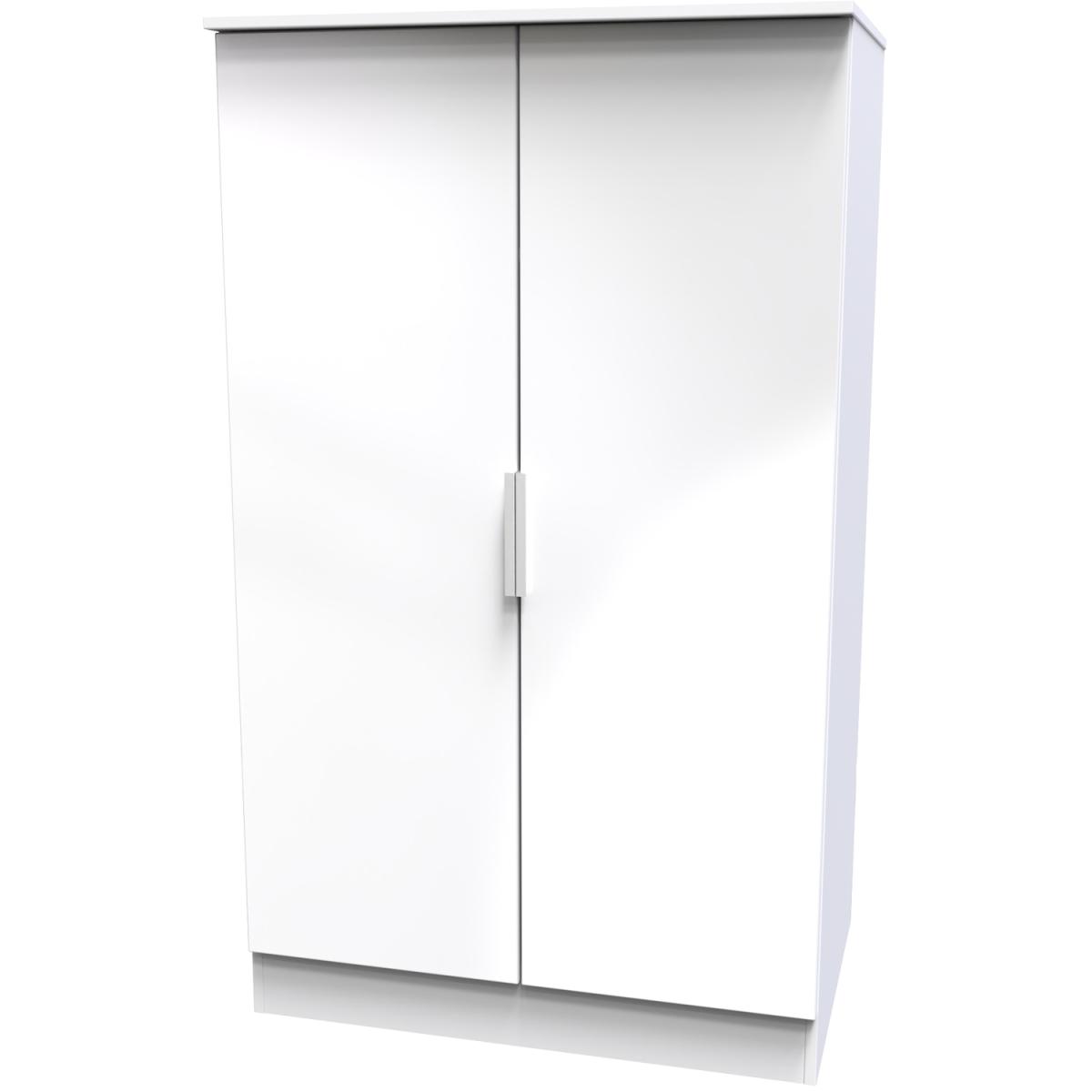 Plymouth Ready Assembled 2ft6in Plain Midi Wardrobe - White Gloss & White