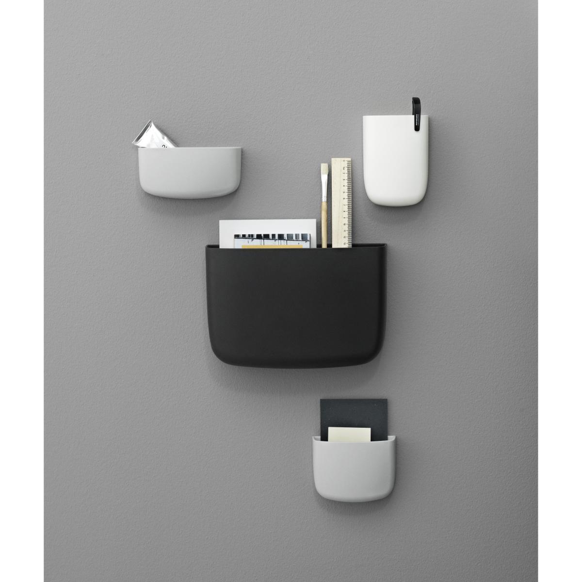 This versatile and decorative wall-mounted storage solution is suitable for any part of your home where extra storage space is needed. Pocket is available in four different sizes and is useful for countless purposes ranging from a magazine holder to the storage of pencils, make-up, kitchen utensils, plants and lots more. A choice of six different colors provides ample opportunity for combining the Pocket Organizers to fit exactly with your taste and decor. Hang a row of white Pockets on a white wall in the hallway for a light, calming and Scandinavian feel, use dark green and black as a sophisticated contrast to a light wall in the bedroom or living room or create your own creative and colorful patterns by mixing colors and sizes. Pocket is mounted on the wall with a sliding bracket, making it easy to lift off and clean.