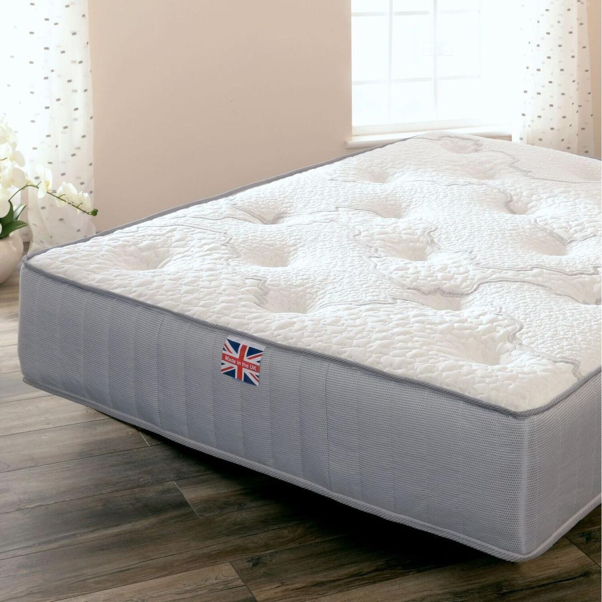 This memory foam and pocket sprung mattress has a unique finish which is complete with anti-dust mite, anti-bacterial, and anti-microbial ensuring the ultimate fresh sleeping environment to encourage a great night's sleep. The cover along with the fillings stops bacterial growth and any odours or mildew growth. The fillings have a number of benefits, with a deep layer of wool which is unique in the way it operates; keeping you warm in winter and cool in summer. Memory foam mattresses custom fit to your body to ensure you are completely supported and so virtually eliminating painful pressure points, and reducing your need to turn to find the most comfortable, pain-free sleeping position. Pocket springs offer tailored unique individual support, as they move and support the contours of your body and offer the right amount of support in the right places to ensure great comfort and support.