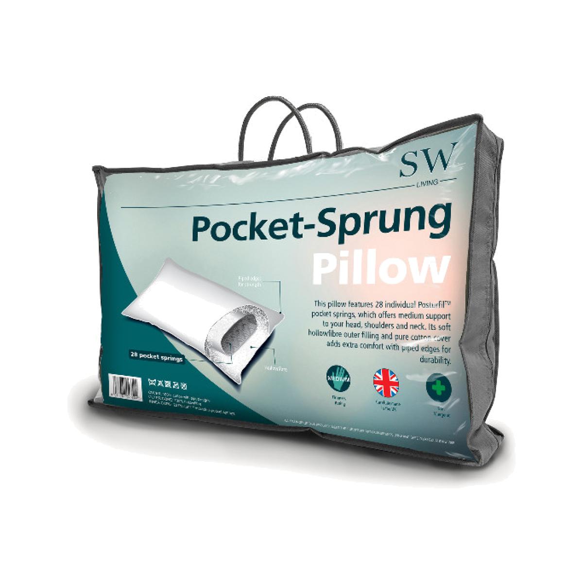 Featuring 28 individual pocket springs encased in a layer of light hollowfibre filling, this lavish Pocket Sprung Pillow provides medium support to your head, shouder, and neck. Complete with a 100% cotton case and piped edges for durability, this pillow is exceptionally comfortable and soft to the touch.