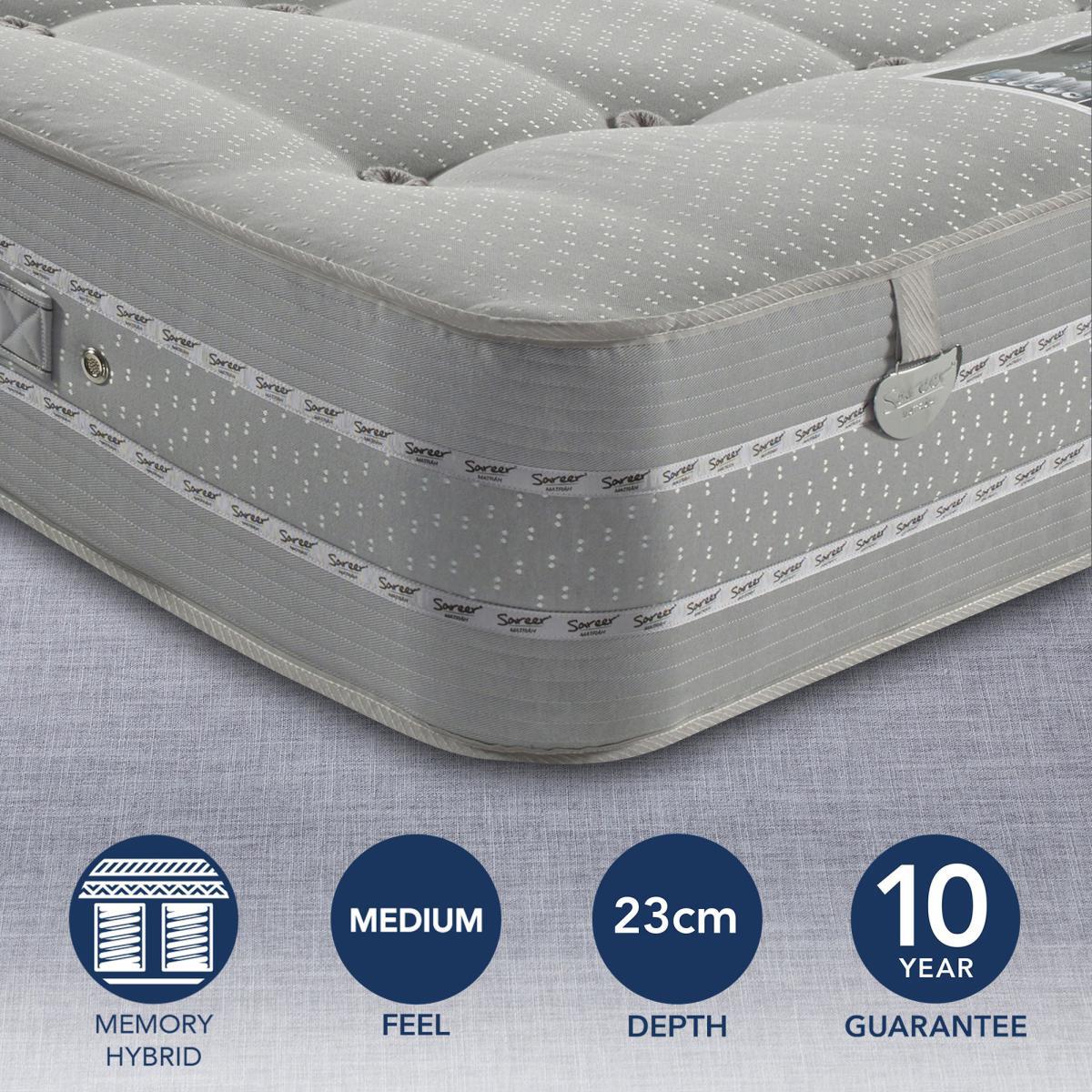 This deluxe Sareer 1500 pocket spring mattress is ideal for neck, shoulder and back pain sufferers. Designed to mould your body, this mattress aims to relieve unwanted pressure, aches, and pains by spreading your weight across the entire mattress surface. With a superior layer of Reflex Plus foam, this mattress ensures additional comfort to mould to your body whilst providing you with excellent support. Featuring high levels of hypoallergenic layers, this mattress is designed to decrease the effects of allergy triggers like dust mites, mould and bacteria, making it suitable for allergy sufferers, providing them a breathable and healthier night’s sleep. Complete with a gorgeous hand tufted finish to ensure that the mattress fillings are secure, reducing the risk of bulging or sinking. Please note, unfortunately we cannot deliver this item to the Channel Islands. Need to throw out your old mattress first? View our information on. Mattress recycling and collections. * For health and hygiene reasons, we are unable to offer refunds or exchanges on Mattresses unless they are returned unused and in their original packaging. For more information, please see our Easy Returns section.