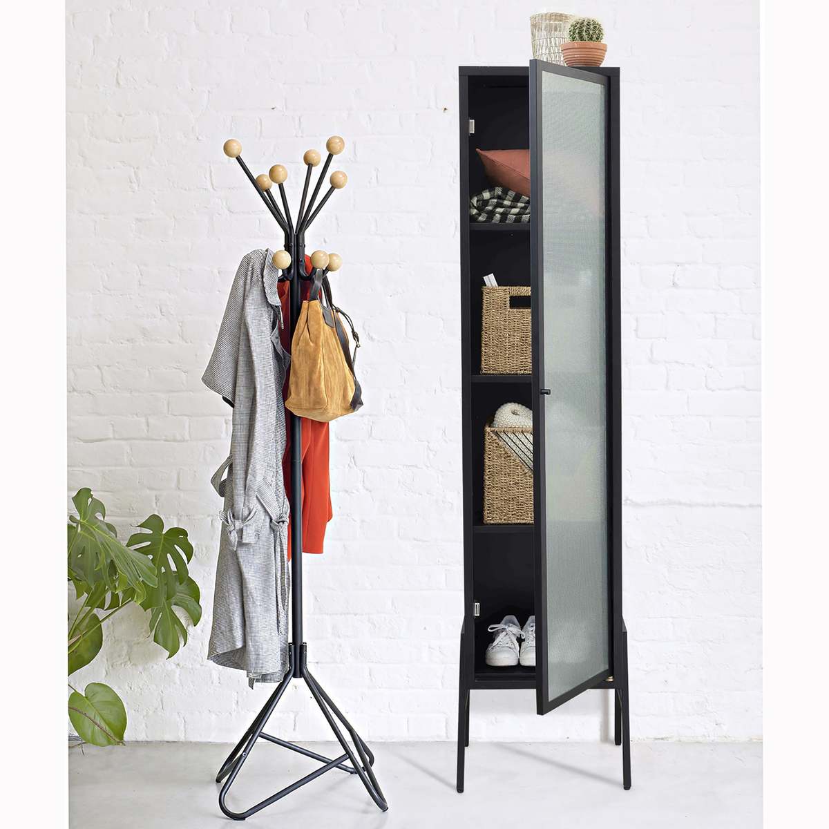 I love this slimline wardrobe for its sleek metal frame and glass door, which give it an industrial yet modern appeal. It works particularly well in contemporary or minimalist interiors, where clean lines and understated style are key. To style it effectively, consider using the transparency of the glass to display neatly folded or hanging items inside, adding a sense of organisation without clutter. Pair it with metallic or matte-finish furniture to boost its industrial vibe, and keep surrounding decor simple to let the wardrobe stand out as a functional statement piece. It’s perfect for smaller spaces where you want storage solutions that don’t overwhelm the room.