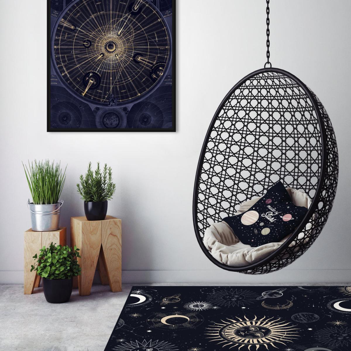 Add out-of-this world style to your space with this vinyl floor mat from PODEVACHE. Designed, created and developed in PODEVACHE's creative studio in France, it features a sun, starts and planets pattern on navy blue background. Crafted from durable PVC with edges that do not move or curl, it's ideal for everyday living. Key features: * Vinyl floor mat * Material: PVC * Dimensions: 99x150cm * Sun, stars & planets pattern * Navy blue backgorund * Non-slip & adapted for outdoor use * Phthalate free & 100% recyclable * Anti-UV finishing * Clean with soap & water * Made in France