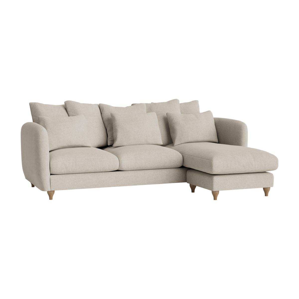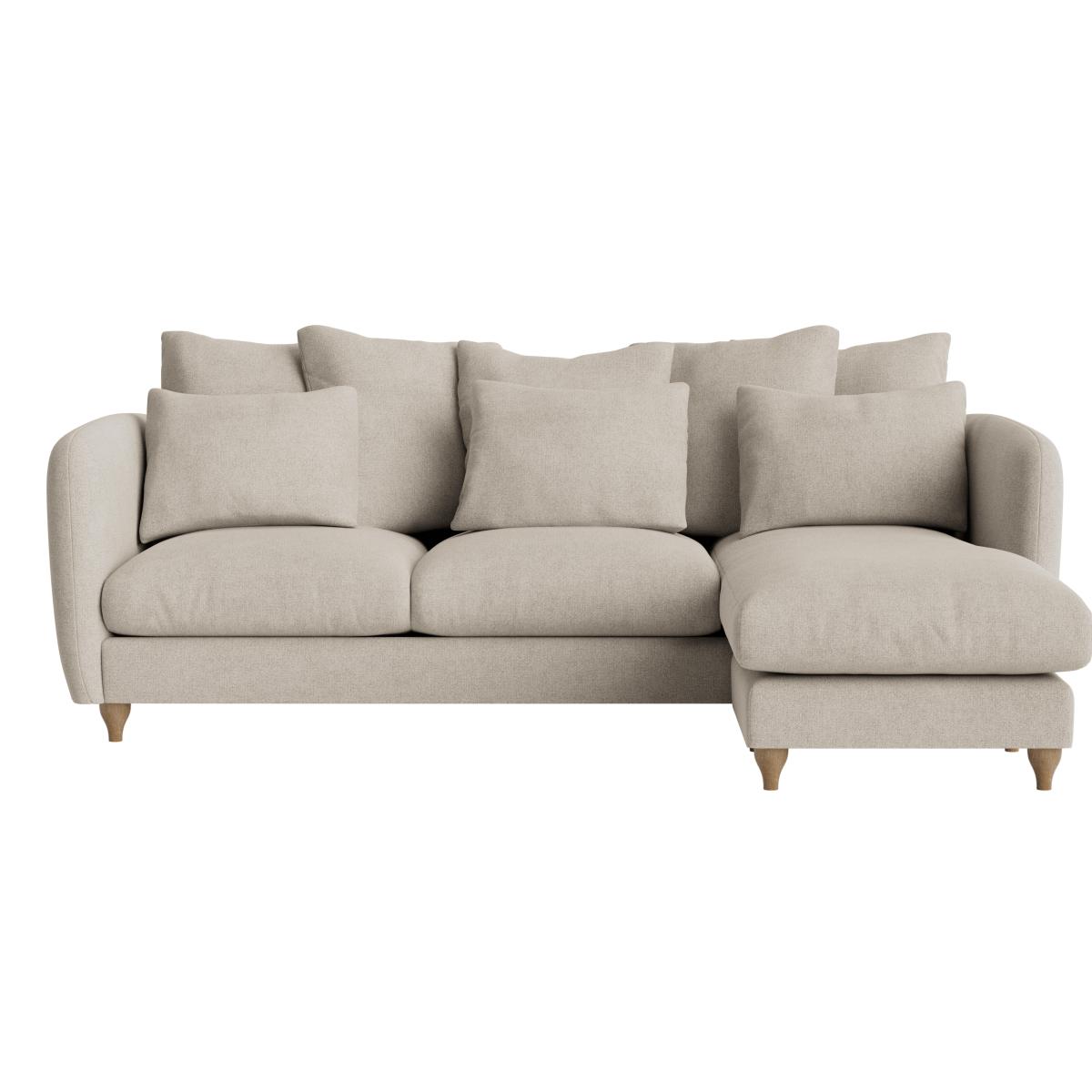 I love this podge chaise sofa for its versatile classic shape and neutral tone, making it a flexible anchor in many interiors. It works particularly well in open-plan living areas, where its corner design can define distinct zones without overwhelming the space. For styling, consider pairing it with textured throws and cushions in subtle colours or patterns to add warmth and visual interest. It’s also an ideal base for layering with other seating pieces or accent chairs, creating a cosy yet contemporary look. In terms of practical tips, choosing a sofa with a durable fabric will help it stand up to everyday use, and keeping clutter to a minimum around it will enhance its clean, modern appeal.