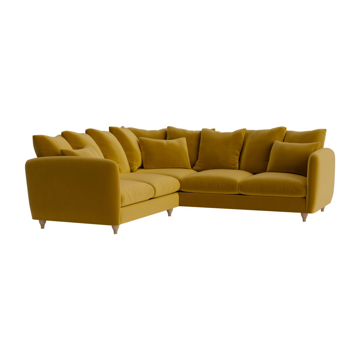 I love the Podge corner sofa for its bold colour and versatile silhouette, making it a real statement piece in any living space. It works particularly well in eclectic or modern interiors where colourful accents can be layered with patterned cushions or textured throws. Its sizeable yet sleek design provides plenty of seating without overwhelming the room, and you can easily add organic or metallic accessories around it to soften the look. For practical styling, consider pairing it with a neutral rug to ground the space, and keep the surrounding decor simple to let the sofa shine. It's a great choice for larger living rooms or open-plan areas where comfort and style intersect.